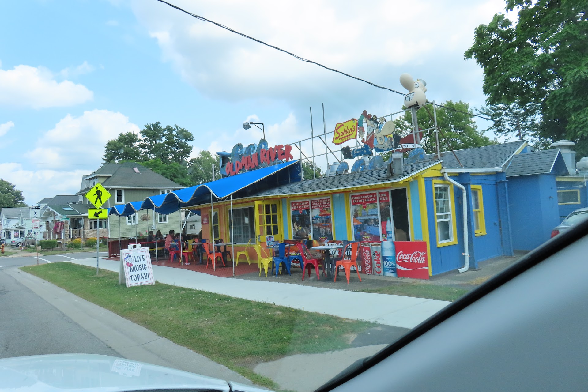 Read moreTaking a ride down the river and saw the restaurant looking like we were out of state on vacation, we just had to stop! The front view was colorfully awesome with a look of separate clam shacks, ample tables and chairs. Turned the corner to see the open entry to the counter for ordering hot dogs and burgers and such, with a view of an outdoor patio with umbrellas and tables, tall tables, too. Then, around the third corner to see a small parking lot and more street parking available. We entered from that back side, and saw the chef cooking/smoking food. It looked fantastic! Such a friendly guy sharing the memory behind the Mark's Corner sign with feeling. We ended up ordering from the outdoor counter, for dinners with two sides; Two chicken dinners with potato wedges, mac n cheese, and corn bread. The chicken was a type of vinegar bbq and the meat was SO TENDER it literally fell off the bone. It was delicious! The mac n cheese was tender and very creamy with a great cheese flavor. Corn bread was moist and delicious! We also ordered a shrimp dinner with potato wedges. The shrimp was plump and fried to a good crunch on the outside with a tender shrimp inside. As we took our food to the table, they brought us a container with the sauces. There is also ketchup, salt and pepper, available to take to your table. A nice cold beer topped off our meals. Wish we didn't have other plans such that we could stay for the live music. Surely, there will be a next time we look forward to. The bathroom was a little on the small side and I imagine if there is a lot of people, you're going to have a wait. But, at least there's a bathroom, sink, soap, and light blowing hand dryer there. It was nice to take a walk across the street to see the river up close, as well. All in all, a great visit and good food, good atmosphere,...