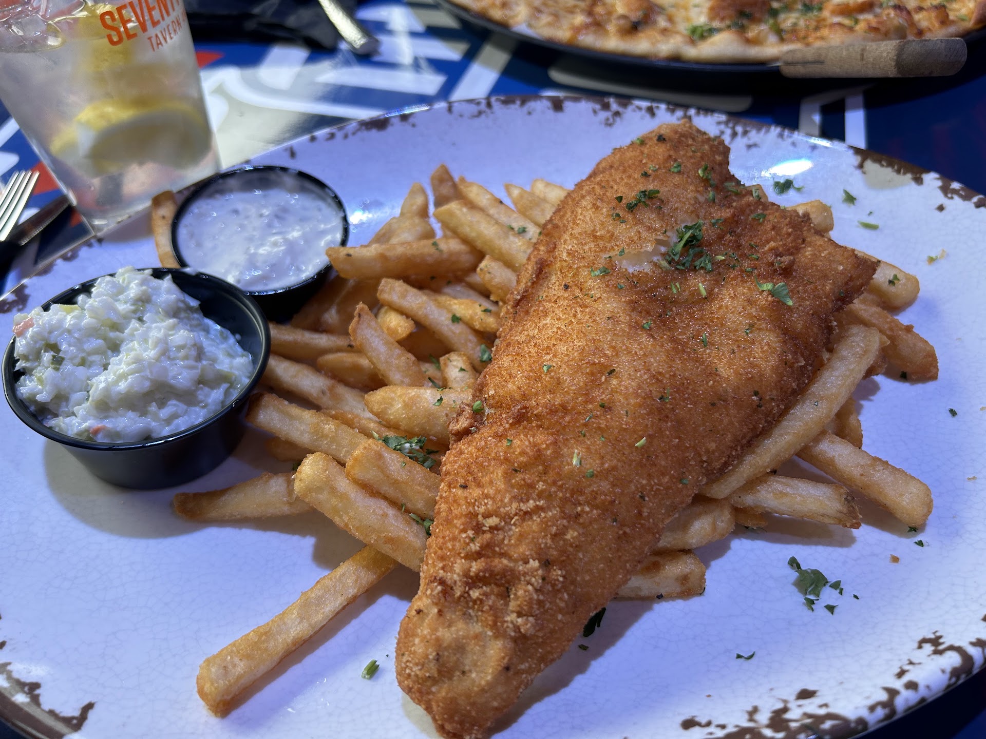 Fried fish dinner was crispy and the fish was so tender. Fries were coated and delicious. Tartar was great and the coleslaw was the best I’ve ever had anywhere. Seasoned so well and only $16.
