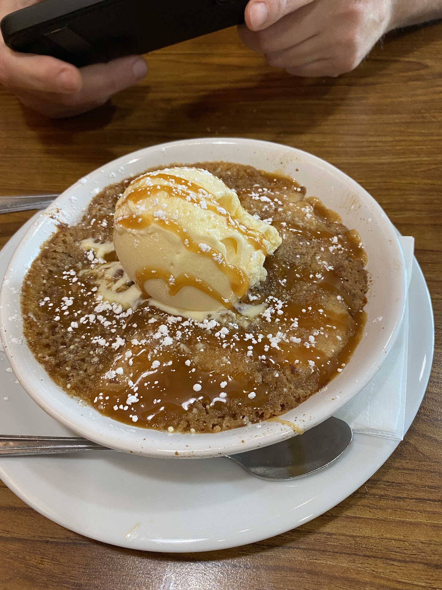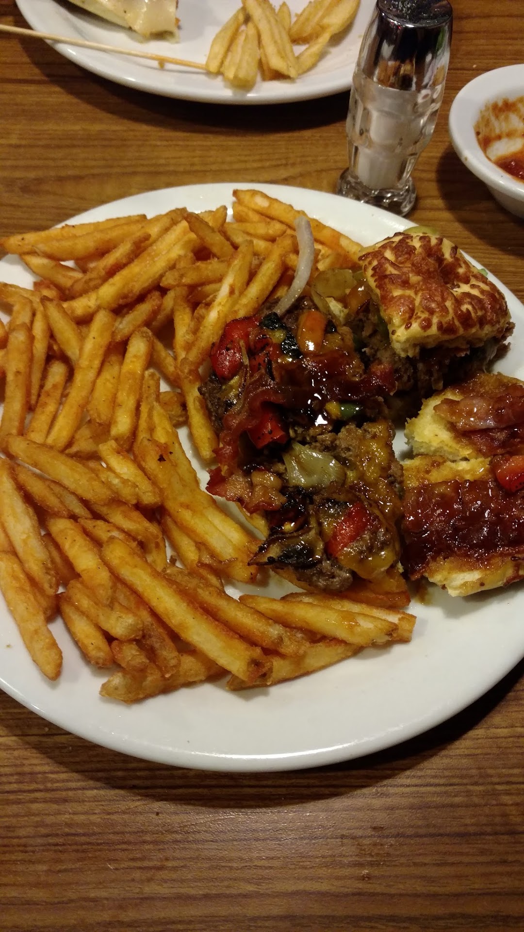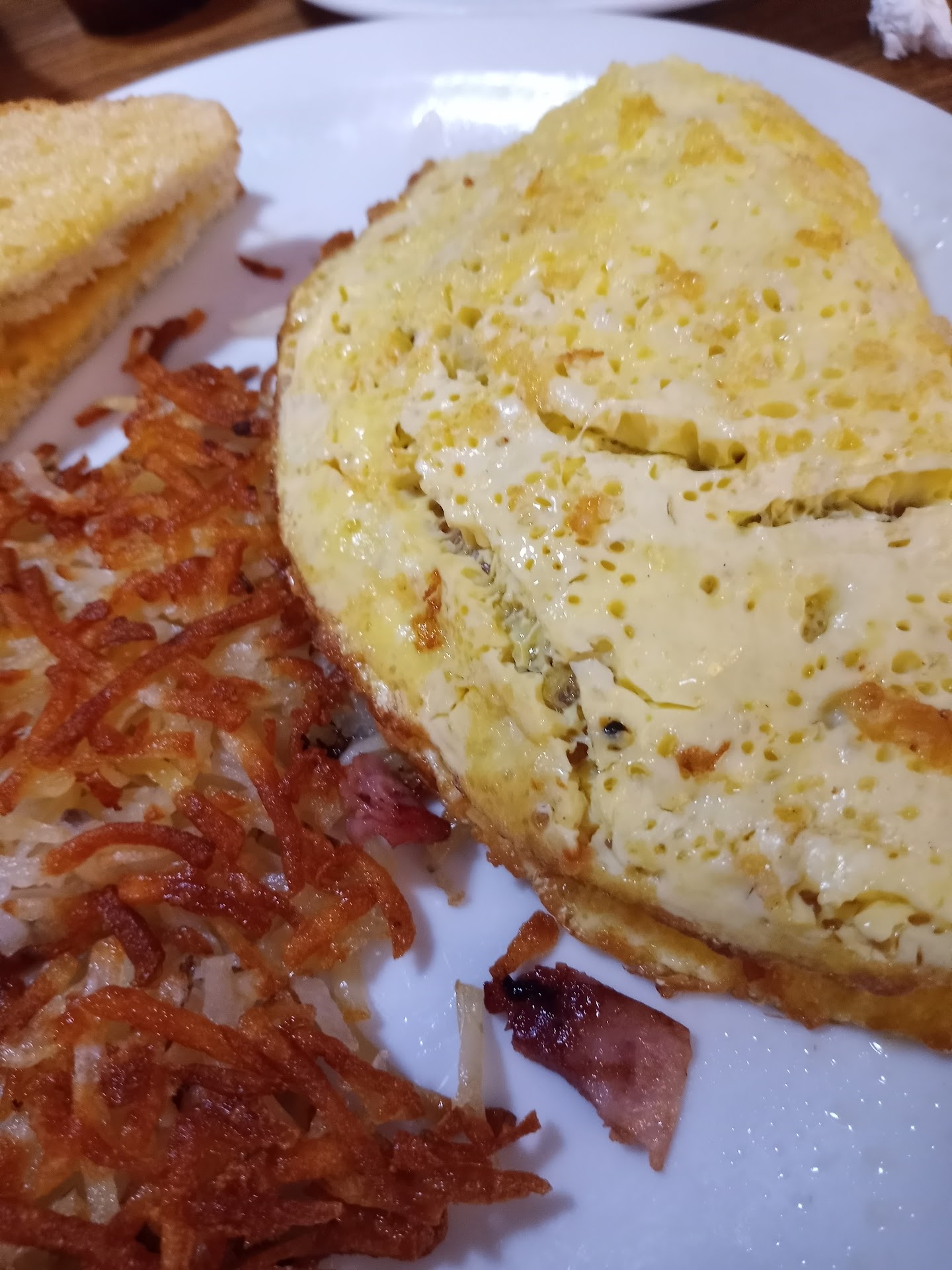 (Doordash delivery) we paid extra for the onion rings as a side and received a whole 4 onion rings and the hashbrowns was a very small portion too and only cooked 0n one side very chewy the hamburg fried was good it definitely wasn't chicken fried steak misleading menu (no steak it was hamburg) nachos was a small portion for a shared appetizer but was good for what there was And the strawberry pancake balls were good they could have used some strawberries to make them moist they are on the dry side. Not sure if we will ever do a take out order...