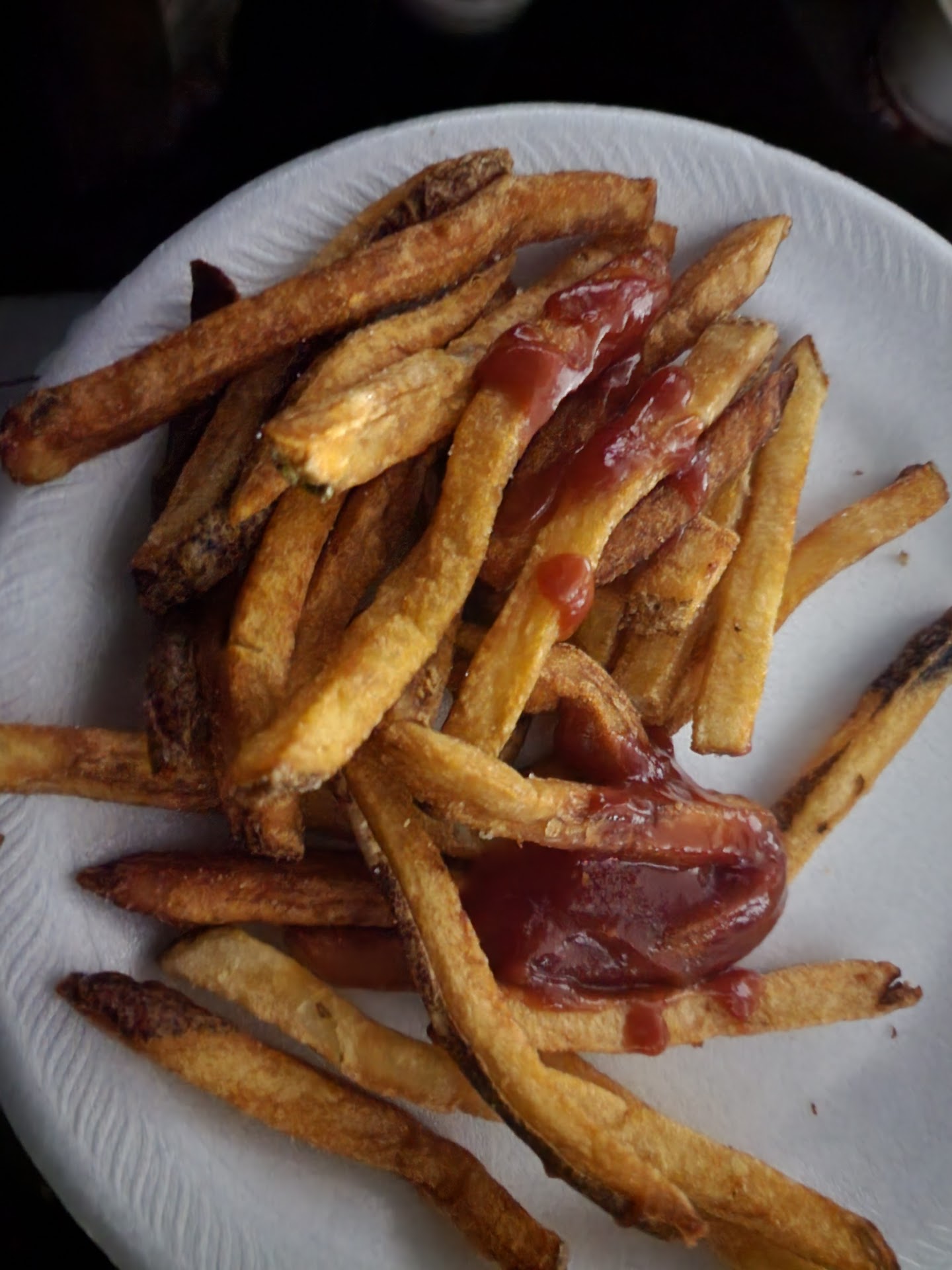 I am cooling my heels in the dining room of a Five Guys Burger and Fries north of the tollway and the interstate and the heart of Utica, New York. I've never been in a Five Guys before although the nationwide chain might be hard to miss now. I have to admit I like the place. Five Guys serves fresh cut fries. Fresh cut fry wagons along the north shore of Lake Erie made me wonder why Canadians flocked to these portable kitchens. I saw the wagons at all the beaches in the port towns between Windsor and Fort Erie, either surrounded by customers or showing a sold out sign. Next day, with delivery of a few sacks of Canadian spuds, the shack was back in business. I think two factors brought the Canadians to the window in throngs. Fresh cut fries are perfect for drenching with Canadian vinegar, clear apple cider vinegar more acidic than we are allowed to buy in the states. Second, Low costfresh cut fries can be served up in massive heaps, long and thick fries with the skins still on that satisfy so much more than what McDonald's or Burger King offers. I ordered up a small order of fresh cut fries at Five Guys and my order filled half a lunch bag. The bag bears the stains of the peanut oil used to deep fry the fries. I've nibbled on them for about a half hour and I'm still not done. Plus, I've poured malt vinegar all over the long fries, Heinz vinegar straight from the bottle. If I were in charge, I would limit the likes of me to packets of vinegar. But no, I can shake vinegar onto my fries to my heart's content. Sadly, the malt vinegar has a tingling touch on my lips, but not the thrilling tingle of the more potent vinegar from Ontario. Today's fries came from potatoes shipped in fresh from Crapo Farms, St. Anthony, Idaho. A sign posted in the dining room lets all who care to know, know. I would prefer to be on the north shore of Lake Erie enjoying their fries, but the Five Guys fries...