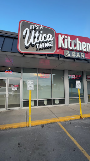 Overall, I very much enjoyed my visit here. Location may not be amazing being in a retail plaza...but parking was plentiful. Signage was unique and inviting. Interior ambiance and decor is fantastic. I was seated near the bar and the asthetics make you forgot all about that "retail Plaza location". Service was prompt and friendly between hostess and server. I tried some of the local brew, "Utica Club". A tasty, typical pilsner style with a clean, dry finish. I kept it local with an order of chicken riggies. Homemade bread came soon after ordering. It had a good hard crust and the homemade herb butter complimented that nicely. Riggies came out pretty quick....portion size was fair...presentation good. Pasta was perfect al dente. Good proportions of chicken, pasta, peppers and onions. A good sprinkli.g of either fresh parm or romano and parsley. I wish I would've noticed that mushrooms and olives were not included, I would've added them. My bad. The sauce itself "settled" as I was eating it, and it started getting a bit greasy. It may have been that the cherry peppers weren't drained well enough, as those normally come packaged in oil. Or the oil seperating from the cheese? In any case, the sauce was still very tasty. Personally I like having that touch of heavy cream in my riggie sauce...I don't think they make their sauce that way here. I enjoyed it thoroughly, but there was some room for improvement. I had an order of Utica Greens as well. I thought those were very well done. Great flavor, good mix with the breadcrumbs and cherry peppers....my only criticism would be that the prosciutto seemed to disappear in the mix. I would definitely come again. Others seemed very happy with the homemade Pizzas. Friendly,...