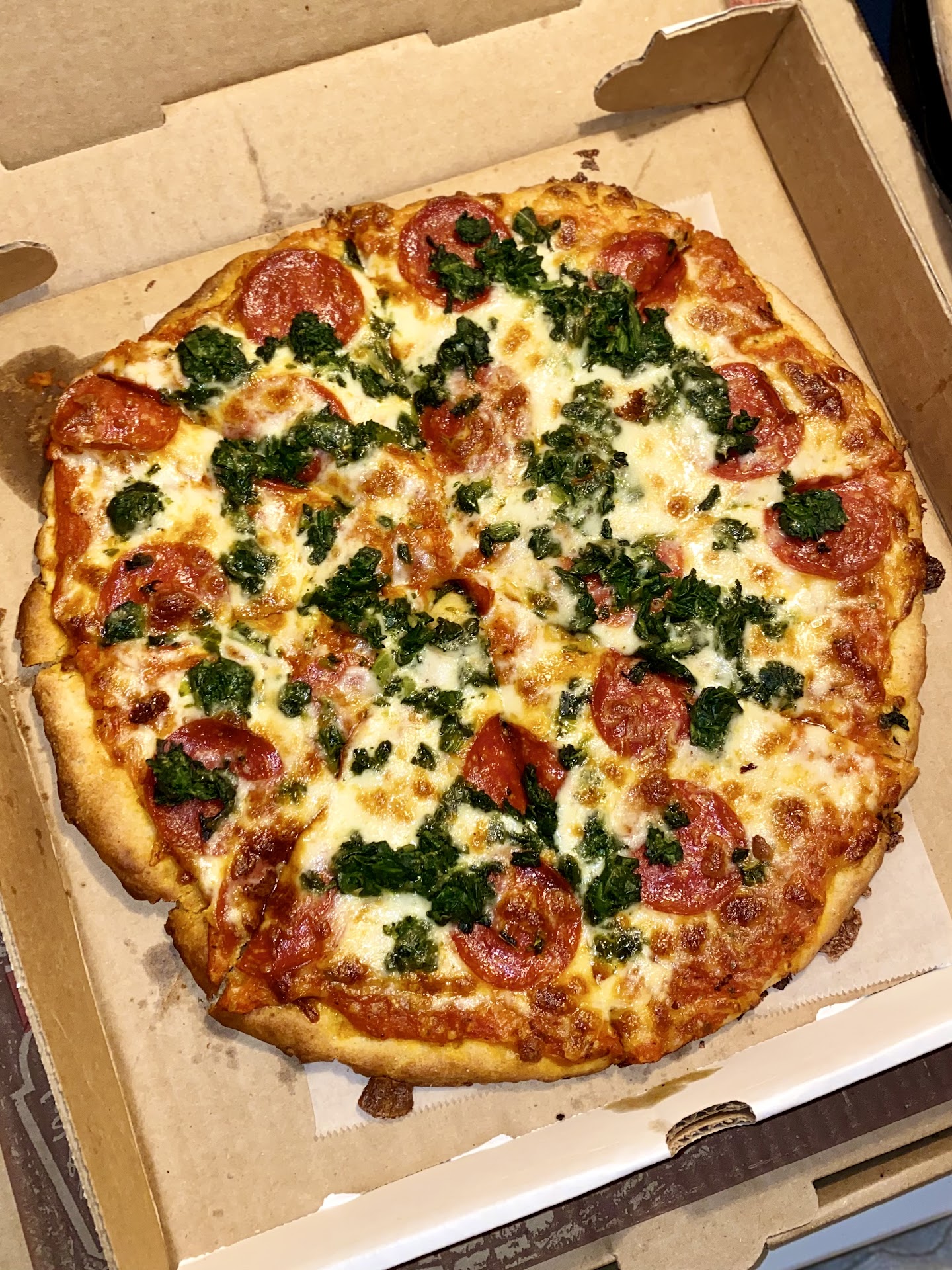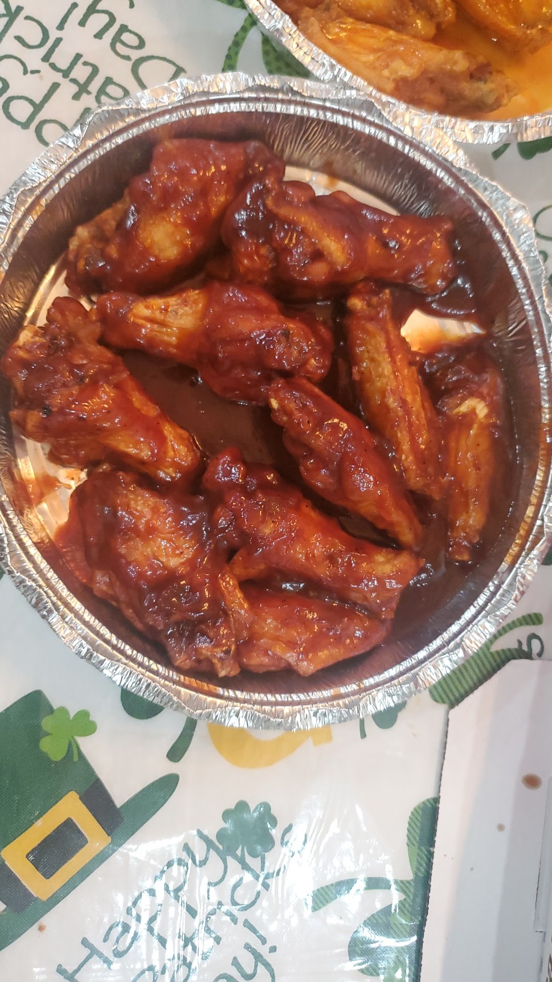 Tonight I googled “best gf pizza in utica” and happened upon a review stating that Pizzeria Italia’s gluten free crust was “thick & flavorful” (thick AND flavorful?!🤤😍). I went on to read reviews about their regular pizza & wings being amazing as well so I looked up their menu and found that they also offer GF Greens, Regular/Buffalo Chicken Tenders & Fries, Pasta dishes such as Eggplant Parm, Chicken Parm, & Chicken/Shrimp Riggies (🤯🤯🤯). Had to hold myself back from ordering one of everything so we went with a Lg Pizza & 30 wings, a GF Pizza which was a FULL 12 inches(!!!) & an order of GF greens. They let us split the order to try different sauces so we went with med-hot & Red Chili 🌶 🤤.