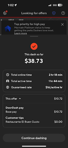 Read moreNormally I don’t do this kinda stuff but today I’m extra angry, I did a DoorDash for Them a 13 meal catering order. Now I see it says I made $10 but that was simply what DoorDash paid me to drive to the restaurant, wait a half hour and then to the hotel to deliver it. So for about an hour of work also helping the lady get the food and drinks together I made $10 no tip from the restaurant after doing over helping them push out a $250+ dollar order yes I chose to do it but it definitely seems unfair, I will also no longer be...