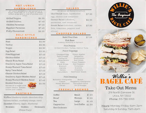 In the food service industry, bad customer service offenses are considered especially heinous. In Utica, the dedicated patrons who report these terrible crimes against food are members of an elite squad known as the Yelpers and Google reviewers. This is my story. To give a backstory, yesterday I cried real tears because McDonalds stopped making bacon egg and cheese bagels, and along with it their glorious breakfast sauce (I'm pregnant and emotionally hungry at this time). My hubby has heard nothing but raving reviews about this place, so he wanted to surprise me by making me my sauce homemade and picking up a seemingly "great" bagel from this joint. Upon opening the hurriedly parchment paper and foil-wrapped sandwich, I immediately noticed two things; the parchment paper was a mess, and there was a stack of bacon thrown only on one side of the sandwich-- nothing I couldn't fix myself. Not the best I've ever had (I worked at a bagel shop in Boston that had bagels from heaven!) but still it was hitting that craving spot. Now I'm about half through my bagel and I chewed on something that made me gag and nearly lose the half I had already eaten. There was a DISGUSTING greasy brown piece of parchment paper that was cooked into my egg (NOT A PIECE THAT IT WAS WRAPPED IN)! Now mind you, I didn't know it was parchment paper until further inspection by the hubby, I couldn't look at it without wanting to vomit. Needless to say the rest of the bagel was tossed. Hubby went back looking for some well-deserved rectification, he brought back said spectacle in a zip-lock bag and made a complaint-- to which there was an "oh" of acknowledgement and he was more or less ignored. Not one to let his temper get the best of him (usually), he left the establishment without proper customer service and returned home, completely disappointed in Willie's Bagel Cafe. 2 stars for effort, whoever was behind the counter was coherent enough to have made the sandwich. There was no love in that sandwich, and customer service clearly needs...