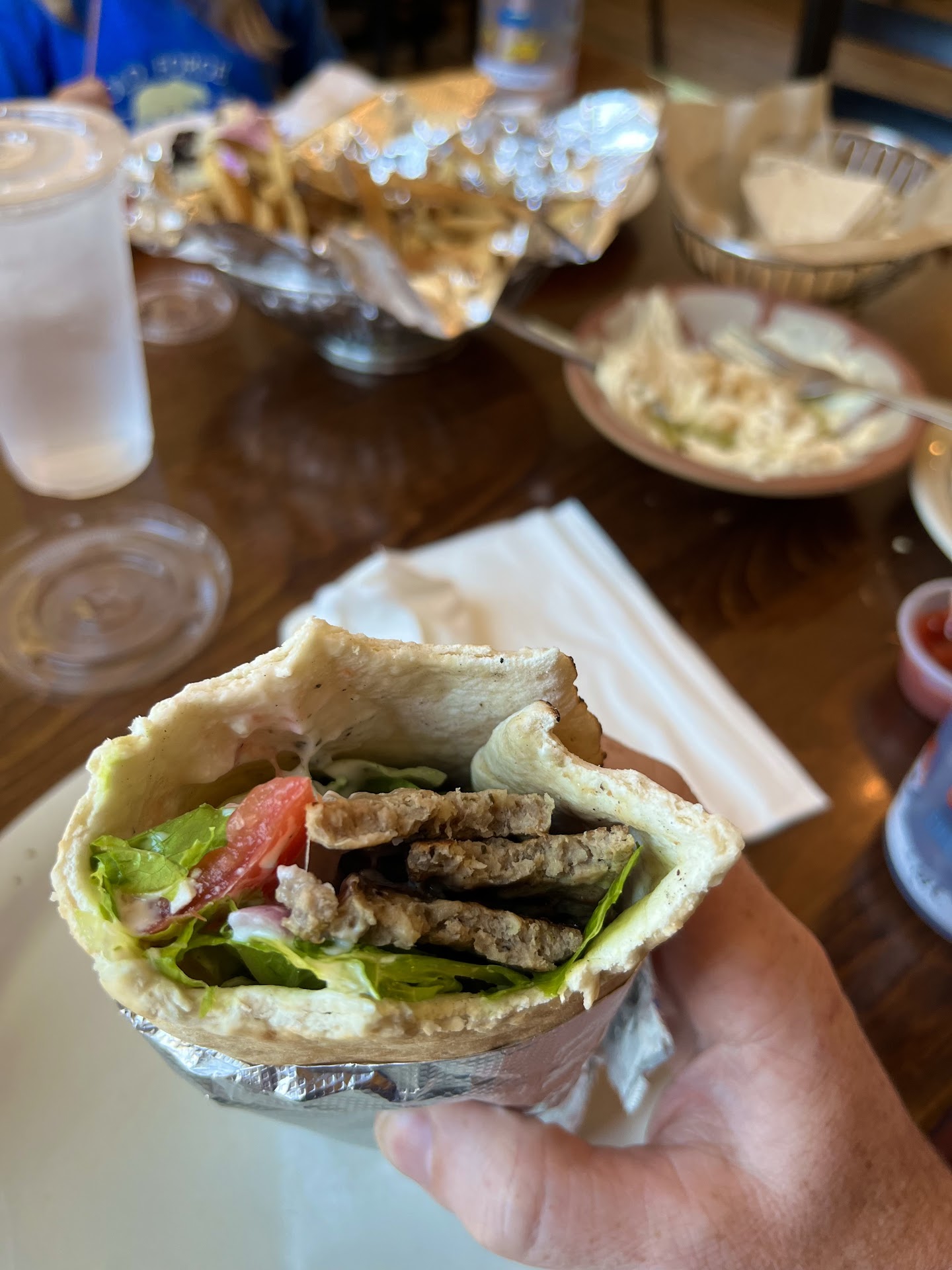 Gyro arrived and I was almost too full to even eat it, but being the champ that I am, I muscled through. More deliciousness.