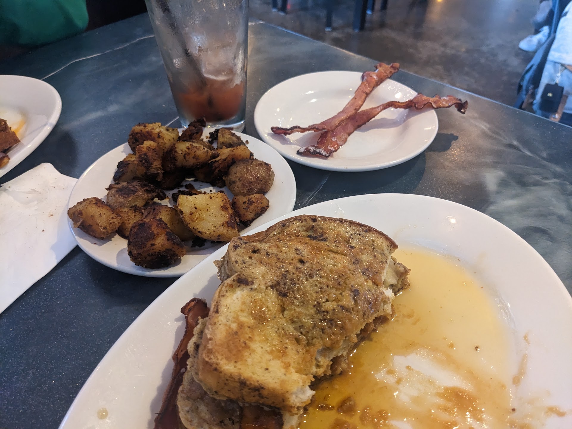 Our family meets in Watertown NY often as it is a half way point for our families to gather and enjoy a day together. Of course our adventures begin with food. We came here yesterday and from pulling in to park until our departure everything about this restaurant is 10 stars and beyond! The building is gorgeous looking from outside, with lots of great convenient parking to the entrance (and it was very cold and windy so that was very much appreciated)! Once inside, a warm greeting Immediately from the server and she gave us a clear run down on how their restaurant ordering system works. She gave us options on our seating and we took our places and quickly took in the ambiance. The place is beautiful inside and out. Very family friendly, cozy couple oriented or a pack of friends for sure! Ordering is done through the app, which honestly is just so much easier for a group than you might think at first. I’d say take a moment to get familiar with the app process and then enjoy looking through their very wonderful menu options. The thoughtful menu ordering system makes this process so simple, even more so than a server taking your order as we got to take our time in looking over the menu items, greeting each other as a family, and soaking in the surroundings without feeling pressured to get our orders in to the kitchen so the server can move on to another table. Our server was so quick to get our drinks after we ordered and as the food came out… WOW is all we can say! Amazing food. 3 of us had eggs Benedict and they were the most perfectly prepared eggs we’ve ever had (besides at home because one of us are a gourmet chef- so getting really Great food out, is rare). Not here! This place had us raving for their food all the way around! If you’re tired of Trying to find great food, come here! You won’t regret it! We will...