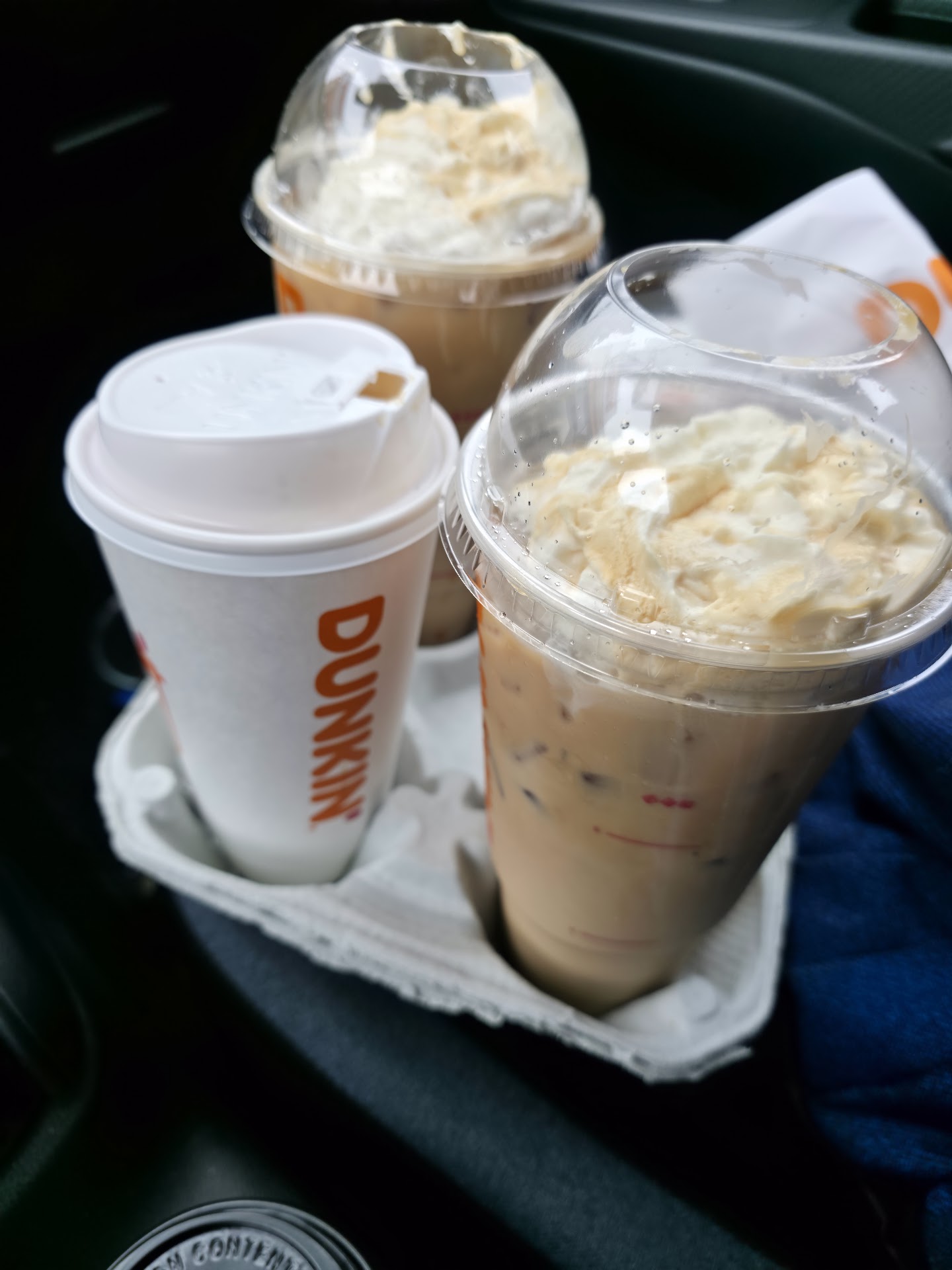 I know dunkin donuts....they shouldn't be asking how many cream and sugars you want in a med hot coffee. It's 3 creams and 3 sugars for that. I must have been spoiled coming from the land of ridiculously fast dunkin service (Rhode Island) where you can order a medium hot regular and they have it ready by the time you get to the window.