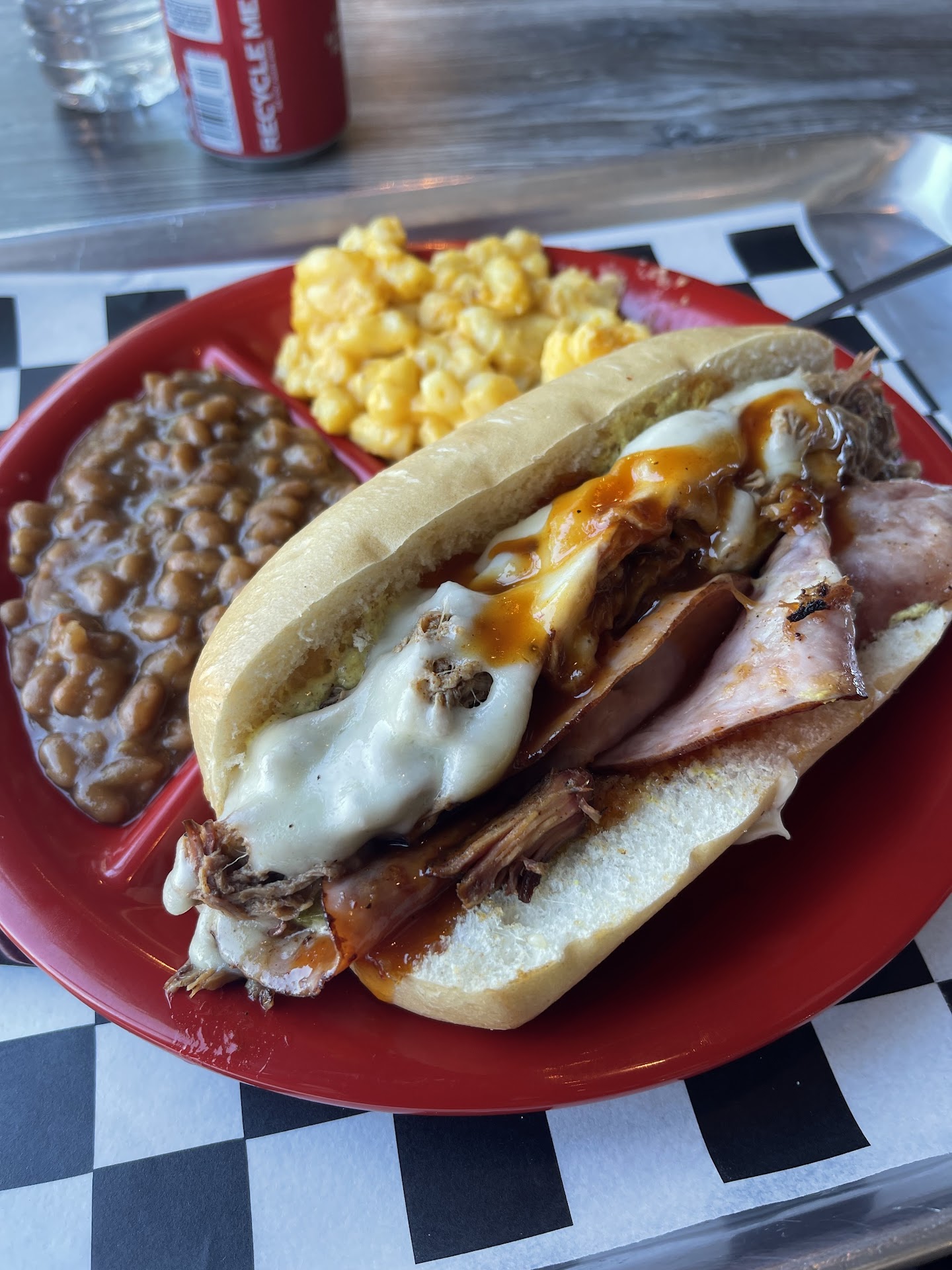 The food was really good....I wish I got more of it but that's always the case with good food. I got a brisket platter and my wife got a sampler with brisket, chicken, and pork. I tried hers and it was all good. The fries are hand cut which I really don't understand why more restaurants don't do that as they are the best! We also got Mac and cheese thinking that's all our daughter would eat, but she annihilated the BBQ so we got to eat it and it was good. I didn't try all they're sauces but they had a jerk sauce that was great when mixed with their sweet BBQ, sweet BBQ was good, and the bourbon BBQ was good. I do wish they had fountain drinks as opposed to bottled water and canned soda. I also wish we got more cornbread because it turned out my daughter loved that too. 5 stars for food, service...