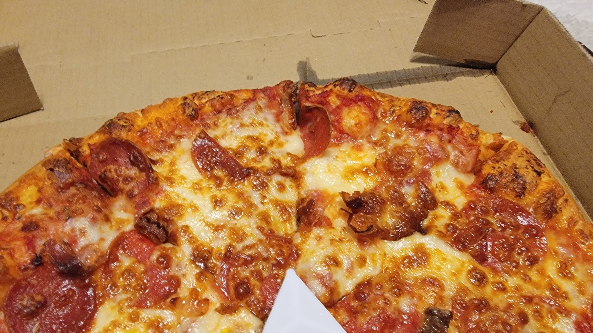 We were very limited ordering at 8:30 pm on a Friday. Most places were going to close, or closed, which is weird to us. Typically in a "city" most pizza places are open until at least 11pm on a weekend. We are from out of town, and we enjoy trying smaller pizza joints. We get sick of Dominos and Pizza Hut. Anyway, we ordered a around 8:45pm, and did so online. First of all, they are extremely overpriced. We wanted a supreme with pepperoni, sausage, onions, peppers and mushrooms. That isn't offered exactly, and instead of them giving the option (if there was one we couldn't find it) of adding a topping, we just created our own (which was only a couple dollars more, no big deal). So, we ordered a medium pizza, and 10 wings. It was over 50 dollars! I said, this better be good. We had an estimated delivery time of 9:38pm. Fine, no big deal. That time came, and went and I called 10 minutes later to just make sure they were coming as it was kind of a weird online ordering system. Guy answered said he was on his way. Perfect! About 5 minutes later, delivery guy calls us. Asks us if we could possibly meet him in the lobby (didn't say why, but he was nice about it), my husband went down. This poor guy was standing there with his arms full of bags and containers. Apparently they had multiple order come in from our hotel so they waited to deliver them altogether. Which, of course, makes sense. However, I feel that ours was left out for some time. Our pizza was cold, our wings were cold and no longer crispy. Crust tasted...ok. Pizza sauce tastes like its just squished tomatoes (no flavor), but the toppings themselves were decent. The wing sauce isn't the best (we had sweet and sour and honey mustard...which they also charge you 50 cents extra to split the 2 sauces). We ate it, and couldn't complain as they closed at 10pm, and we had zero other options. So, there wasn't anyone to be able to complain to, which is why I am doing this. I saw the 4.1 rating, and was hesitant. We should have taken our business to the other upscale pizza joint that had a 4.7 rating. Noted for future. We will not ever eat here, again, or recommend it to anyone. I gave 3 stars for atmosphere, because I have never walked into the place, but the...