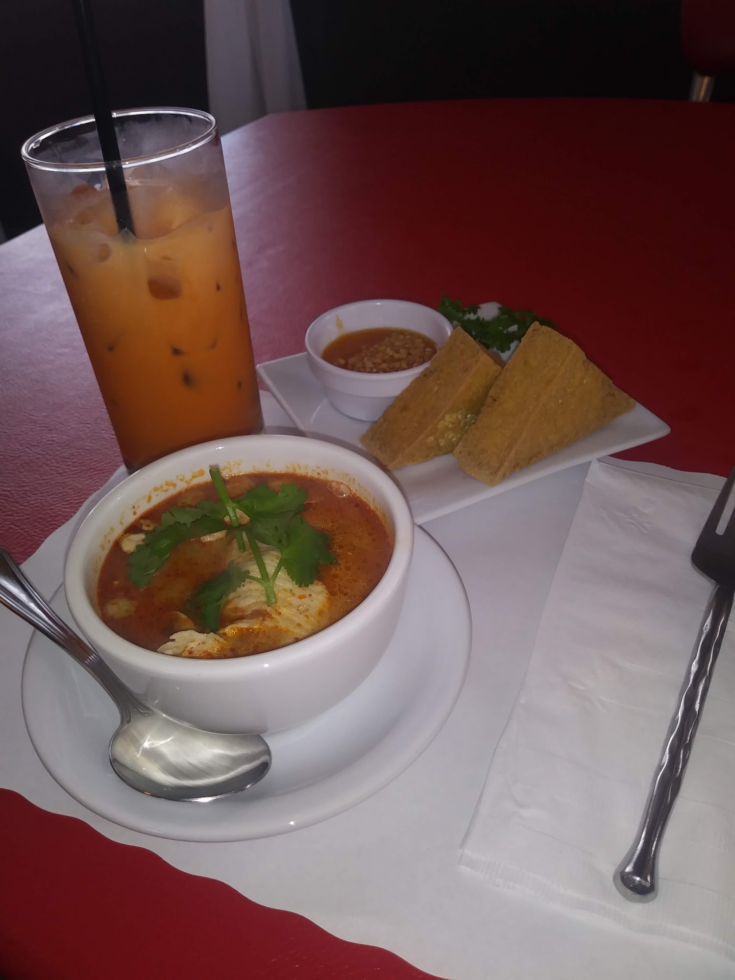 To complement the meal, I tried the Thai iced tea, which was a sweet and creamy indulgence that paired beautifully with the spicier dishes.
