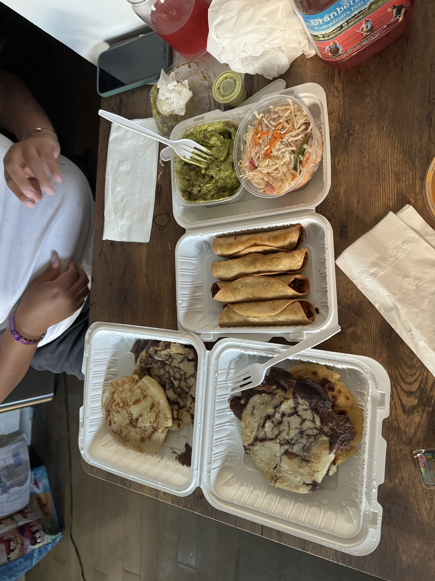 MY ORDER : 5 TACOS Beef, Chicken, Al Pastor, Chorizo with 2 scrambled eggs, Chopped Pork. All laced with Mozzarella cheese. Chips (WHICH I BELIEVE WAS HOUSE MADE THEY ARRIVED SUPER HOT AND FRESH) and Guacamole (uniquely tasteful guac) GINGER ALE (CANNED)