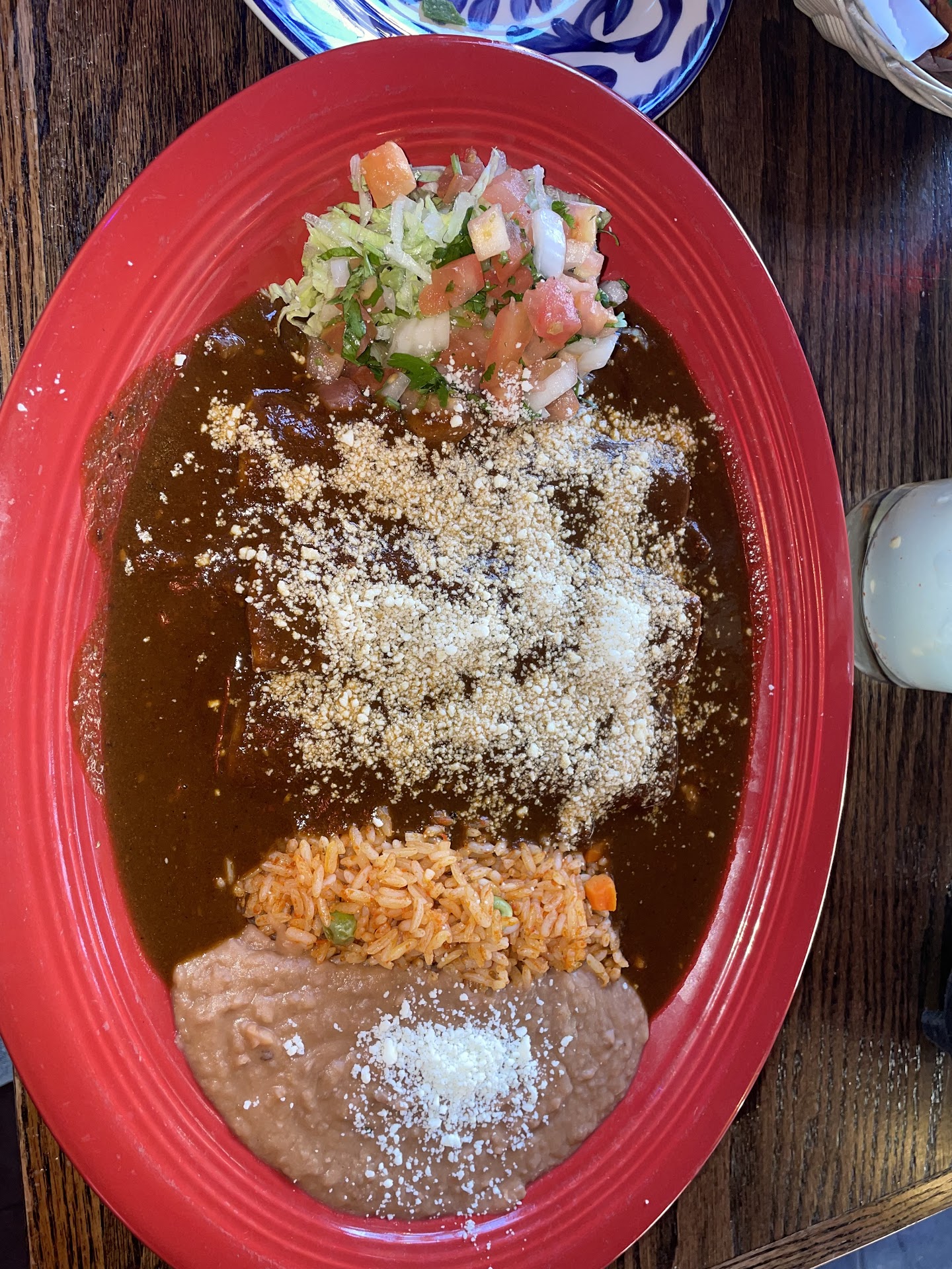 When my friend arrived, we ordered flautas and enchiladas de mole. She enjoyed her flautas, but I found the enchiladas underwhelming. The mole sauce was just okay—I’ve had much better. While I finished my meal, the portion of rice was meager compared to the sauce. On the plus side, the decor was nice, and they played good music.