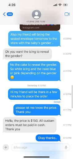 Read moreI came out to NY from California to have a baby shower with family and friends. I had a cake from California that the frosting was damaged in transit and I asked them if they could please help me repair it. They were nice to even be open to the idea of even helping me as most places will only work with a cake made by them. Issue came when I showed them the cake and a woman said she would take it back to show the baker to see what he could do. She came back and told me $35 to fix the frosting. Mind you the cake only cost $40 in the first place. I told her that $35 was too much and I will keep my cake as is. She left and came back and said how about $30? I said no, thank you. She then brought me back my cake without frosting. They took it off before we had eve agreed on if their price would be acceptable. Then she was very nasty and told me that I was trying to make problems for her. That I came in with my cake in need of repair and I was trying to pass my problems onto her. I am a very courteous person. Polite, considerate and I have worked in food service as well as customer service for 20 years. The way I was treated and spoken to was absolutely horrendous. I would have never treated a person or customer the way that they did. I felt like she was trying to impose stereotypes on me and was upset that they didn't fit for her to get a reaction out of me that would justify her horrible treatment. I write nice reviews as well as bad. If it was possible I would give them no stars. The customer service, maturity and experience is unreal! I would have been fine if she would have said, "I'm so sorry. They started the work before I told them to. What can we do to make this okay?" I don't understand how frosting costs $30??? I didn't have a difficult design or anything. Just needed a smooth cake. Esa mujer que trabaja alli no tiene verguenza. Me trataron mal y en una manera terrible. Nadie se lo merece. Especialmente alguein como yo que siempre trata y habla con carino y respecto. Un negocio nunca debe tratar a sus...
