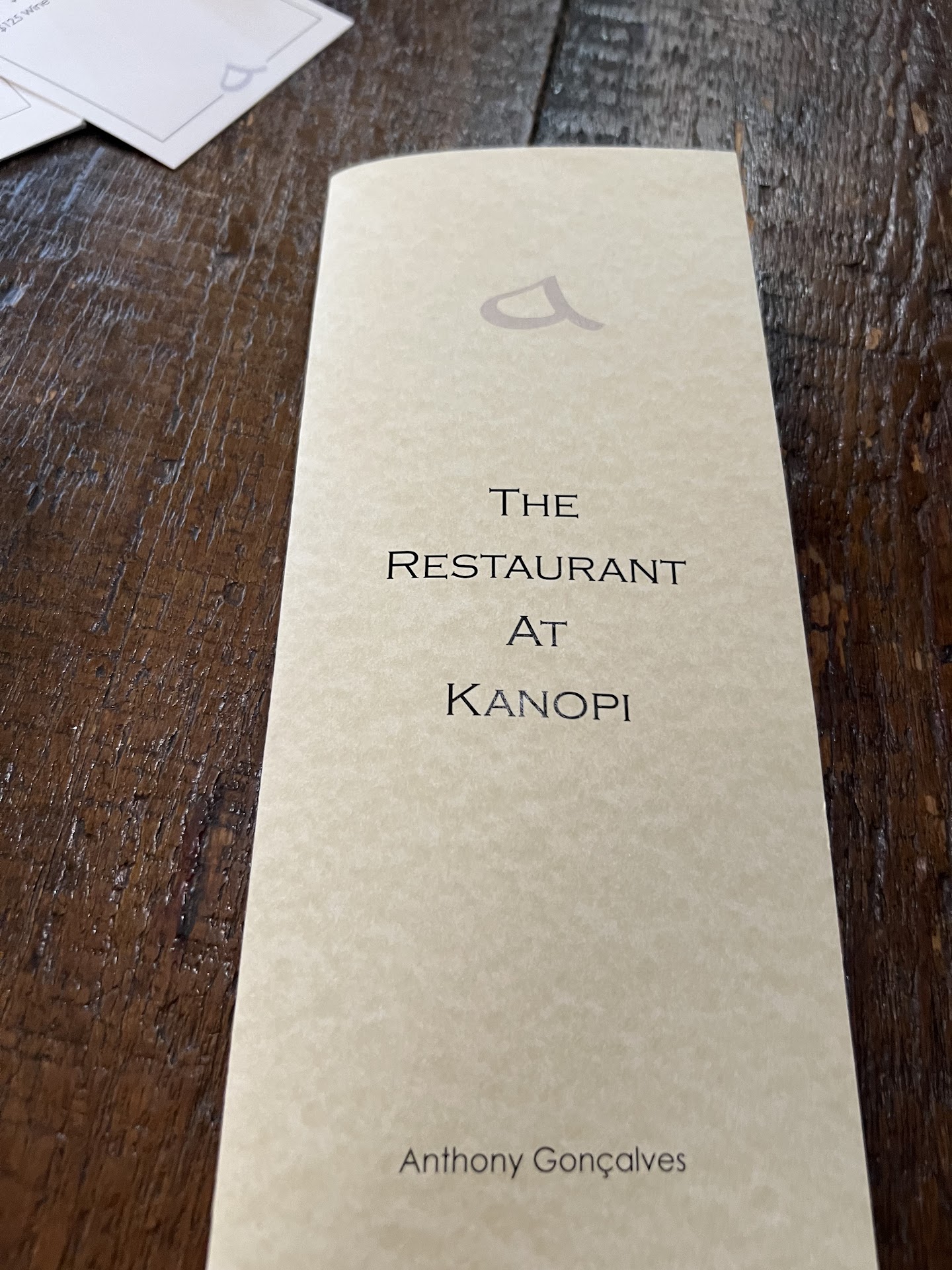 Read moreWhen you make a reservation to sit inside the Chef's kitchen at Kanopi you expect that Chef Goncalves would be there. You would think for $250 a person to sit in the kitchen ($100 more than anywhere else in the restaurant) you would meet the Chef, he would explain his creations and maybe even tell a little bit about what inspired each dish. What you don't expect is to pay $250 per person and be greeted by the Chef's wife who is not a Chef, but a real estate agent - making her apologies that the Chef is not there this evening. Um... Chef Goncalves wife, Andreia was very lovely and could not have been any nicer, but... this is not what I was paying for, not at all.