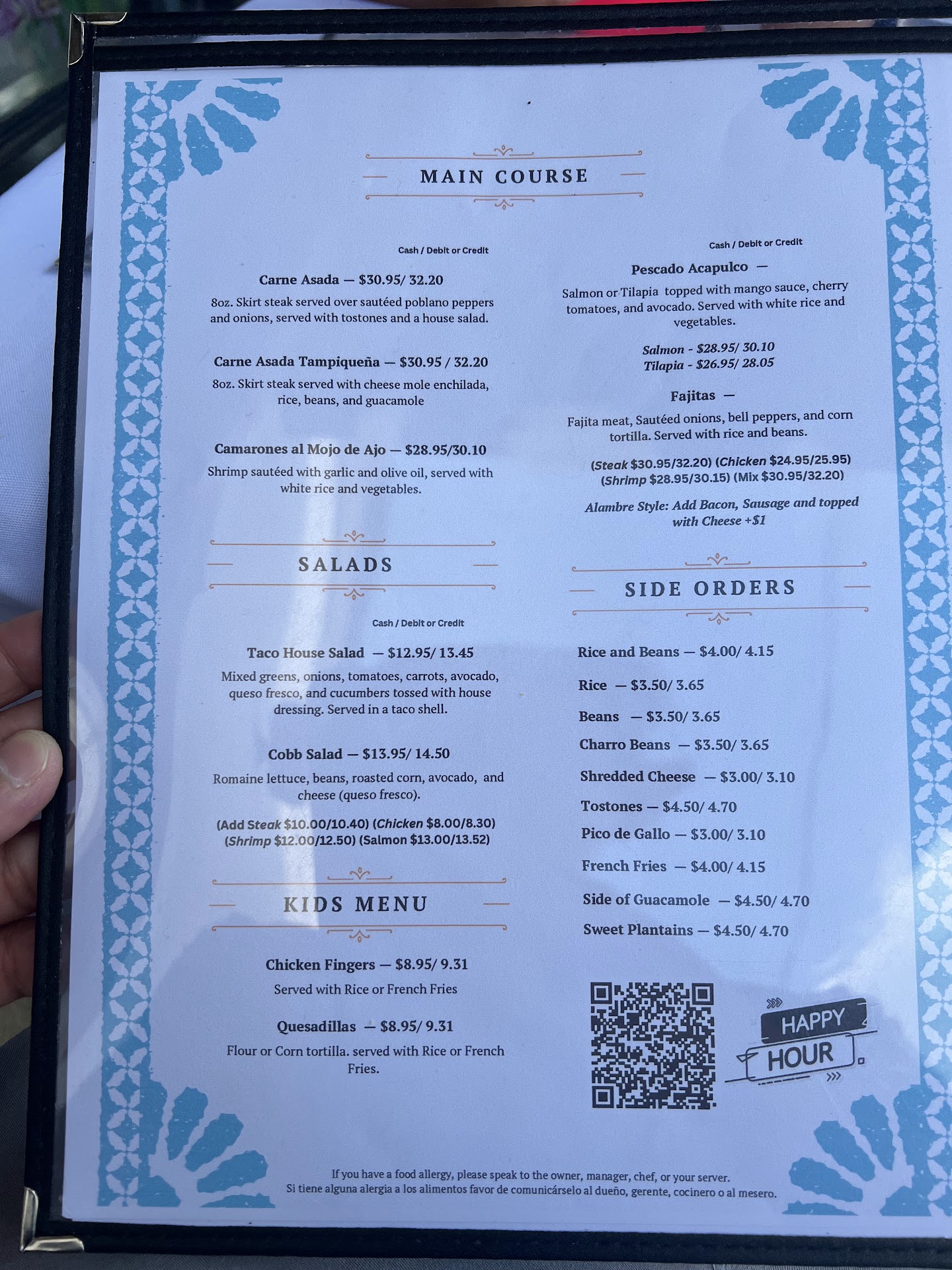 Also, they added the tip with only 4 people which never happened before, it even says on menu a cash price vs cc price and i paid cash and they still charged me the cc price, i actually drove back for the money cause i was so disappointed in spending that much for so little. they responded that tortillas come with my meal but they actually charged 2 bucks for tortillas even my nephews $35 carne asada steak they charged him 2 bucks per tortilla, just feel ripped off...