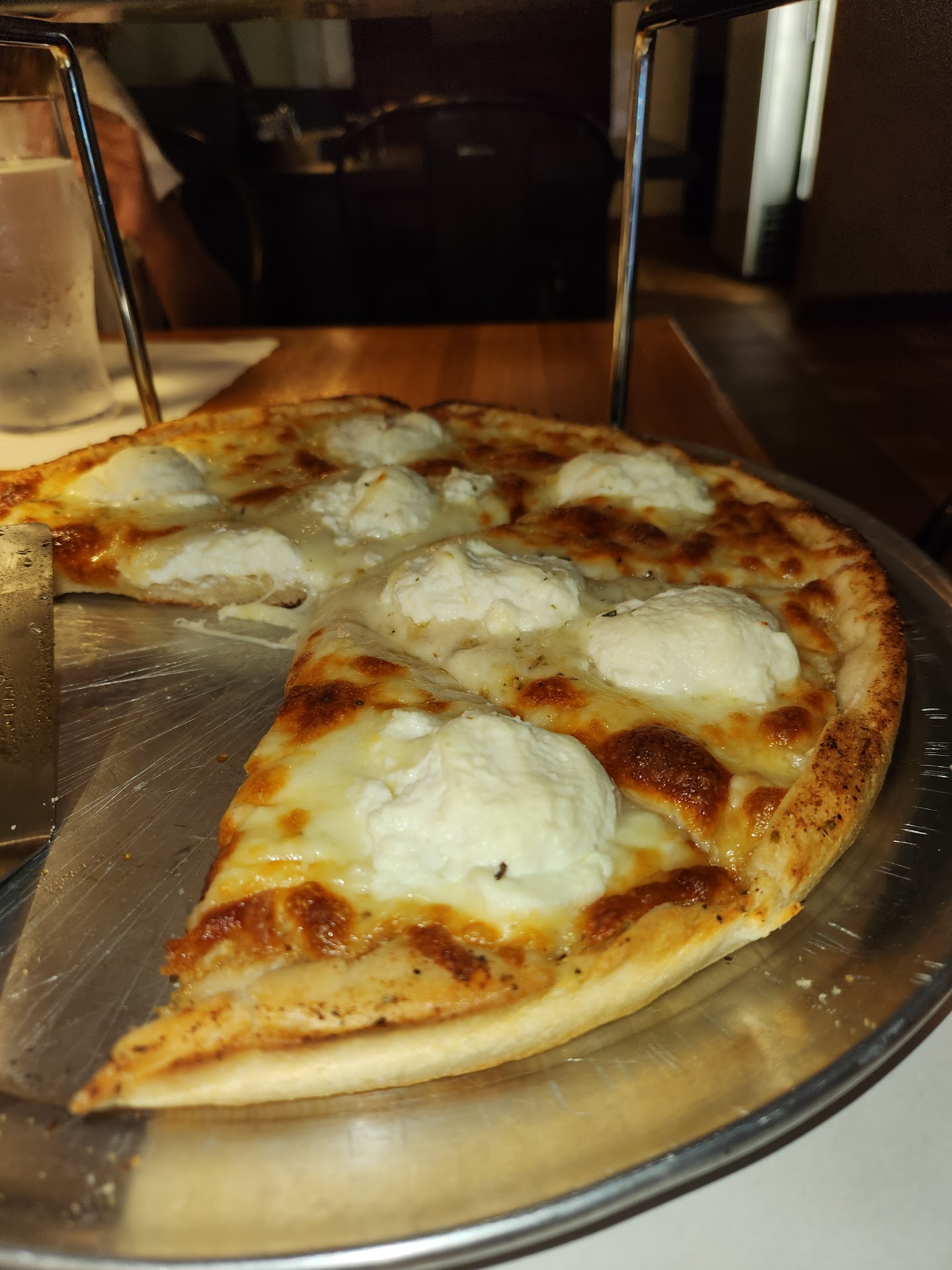 Pizza had a good chew, fair amount of pepperonis, but the bottom could have been crisped more. The dough didn't have much flavor and we would have also liked more pepperonis on the top so they could get that delicious char; the slice with the random pepperoni on top was the best of the bunch.