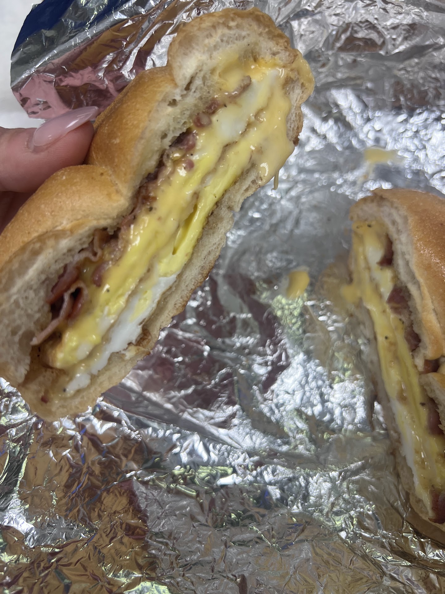 I just got turkey bacon and egg on the seated hero and a bag of chips. $9.25! Amazing. The sandwiches huge at least a few eggs and tons of turkey baking. Super happy with my sandwich.
