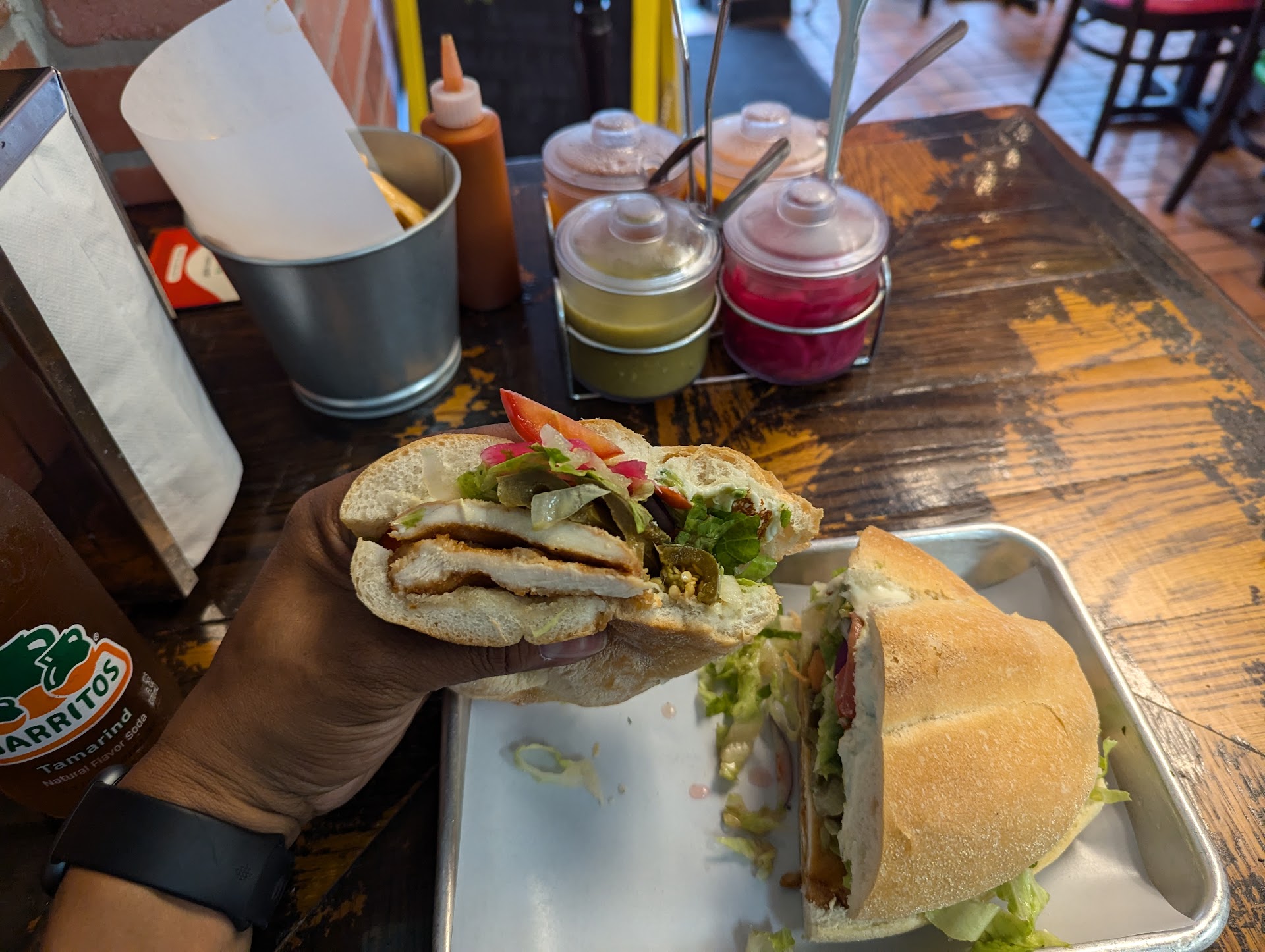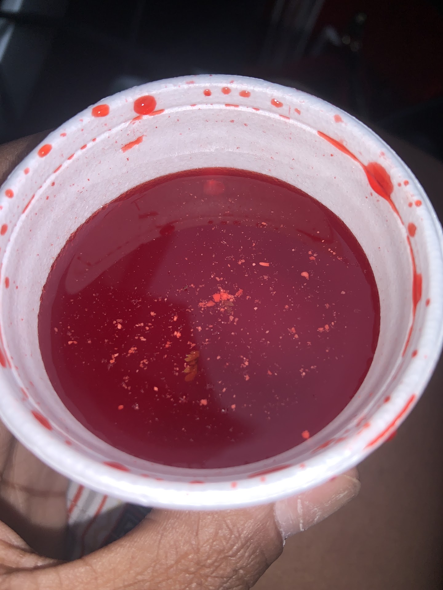 After getting my order finally my food was already cold. Even after being placed under the heater. When opening my cherries for my piƱa colada this is the remnants/ strange particulates floating in the juice !!! Even the chef nor the lady at the front couldnāt explain to me what was floating...