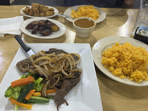 Read moreGreat for take out to eat at home. To eat in, that's a different story. Been coming here for years to grab and go the usual family meal options. It's have been very good. Usually grab the rotisserie/flame grilled chicken, rice with beans. Sometime the pasteles and oxtail when they have em. So the food is good. Lately some stuff have been more salty then other times. Eating in. That's another story. Service is sub par. The plasric cover menu are dirty...yuk. my order of skirt steak came out slightly cold. It didn't help that it came out without my order of rice that was part of the meal, then we had to wait almost another 10mins for rice to come out..da hell? There's a stack of rice sitting under the hot table out front. 10mins......come on. The fried chicken chunks aren't as meaty as other places. The hostess where not very attentive. While they are too busy playing around and laughing with each other in the back corner by the kitchen door. Be careful not to double tip. They include the 15% tip into the bill. Yes....take a look at your bill. We where a party of 3 and the tip is already figured in. So becarefull. I would have rather left 10% for poor service. But at that point I just wanted to pay cash and leave. Don't think we will be dinning in ever again. This was the 2nd consecutive sub par dine in experience in a row at several...
