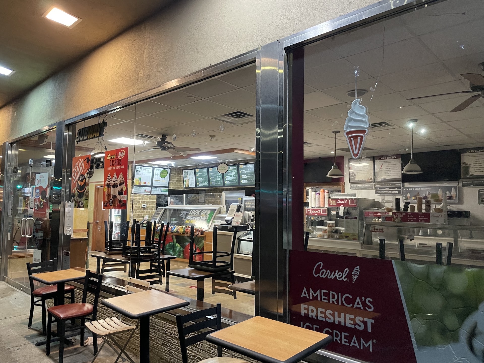 I didn’t have a good feeling when I saw some of the hard ice creams had different looking ice cream sitting on top. It looked as if they dumped some soft serve on top of the hard ice cream and it froze in big clumps. I should’ve just left upon seeing that, however against my better judgement ordered for my kids since they wanted something different than those flavors with the weird clumps. My son had the “carvelanche” which is soft serve mixed with a topping. It took the employee about 7 minutes to make it. I didn’t know why it was taking this amount of time to mix chocolate soft serve with chocolate crunchies, but we were patient. Once he got it we sat outside and after a few bites he said “what is this? And pulled a jagged piece of hard plastic out of his mouth.” I brought it back inside and the employee was not at all phased and claimed it was part of the cap. However the cap was not broken at all and the cap was a much thinner clear plastic while what he pulled out of his mouth was white and much harder/thicker. She took it from me and said she’d make him a new one. I went back outside thinking it would be another 7 minutes to make a new one, however less than a minute after I went outside she came out and handed me what I thought was a new one. I gave it to him and he said this is the same one, it has the same amount of ice cream missing. This place is gross, I’ll stick to different Carvels or other ice cream shops. Never going back...