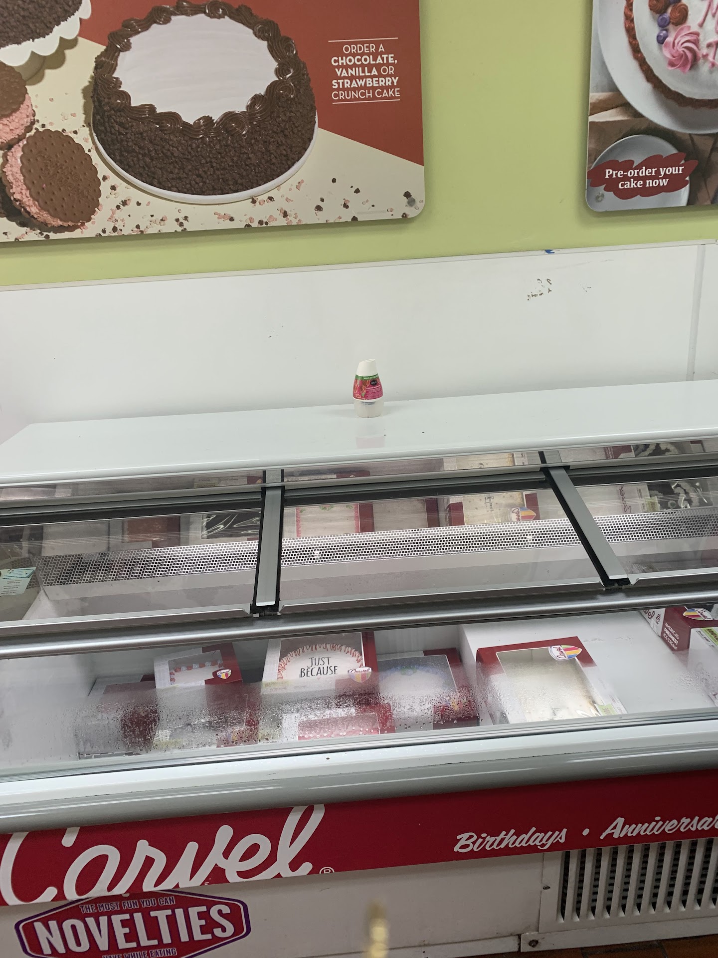 Read moreOne word to describe this place TERRRRRRRRIBLE. The workers are very unpleasant. The lady serving to customers doesn’t even speak nor understand English. The least she could’ve done was put a smile on her face! The place doesn’t look clean whatsoever. Just look behind the counter! I even saw a child size toy car behind there! Like huh? I felt like I was in someone’s house. They definitely don’t provide a good image for carvel here! As a side note the ice cream you can purchase to go looked as if it were sitting there for weeks! I would NEVER come back to this place again. This place honestly shouldn’t even be open with how nasty it looks....