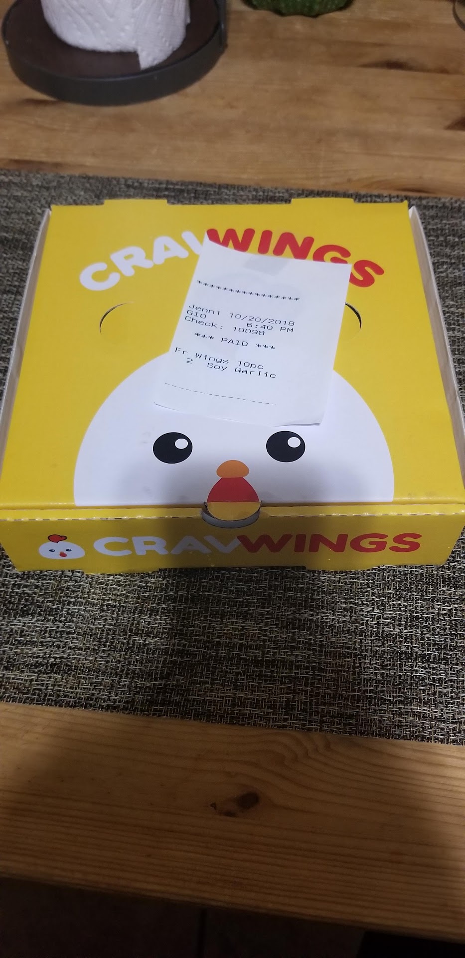 Update 7/19/19 7:36 pm Check: 20026 My second visit here. It did not take long for this place to get like other start ups of its kind. The two young ladies working the counter tonight were more interested in ordering their own food from another restaurant and having it delivered to Crave wings than paying attention to myself waiting for my simple order of 20 wings. I watched the girl pack a box and place it on the side and continued non business related cell phone calls. When I asked for the status of my meal, she grabbed the bag ang handed it to me. I did not order to go and it was packaged to go and my wings were cold. Also another interesting point, this is an Asian store but only the cooks appear to be Asian. Final note: the workers posted a non company issued computer printed sign advising that celery sticks are no longer for free due to increasing cost of materials and labor. Maybe if they got off their personal phone calls, the company would have productive workers and not charge the customer $2.25 for a condiment that is free in every food service in America. No, they were a 5 star but now a 1 star rating. Lost me...
