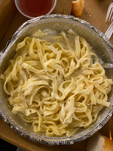 I ordered fettuccini Alfredo, which was beyond bland. The sauce literally tasted like milk, absolutely no flavor. I tried to doctor it up, but it just wasn’t good. I also ordered bruschetta, which was 85% onions and vinegar dumped on top of hero bread. It was fine, but so vinegary I couldn’t finish more than one piece. It came with a lot, which would’ve been great if it tasted better...
