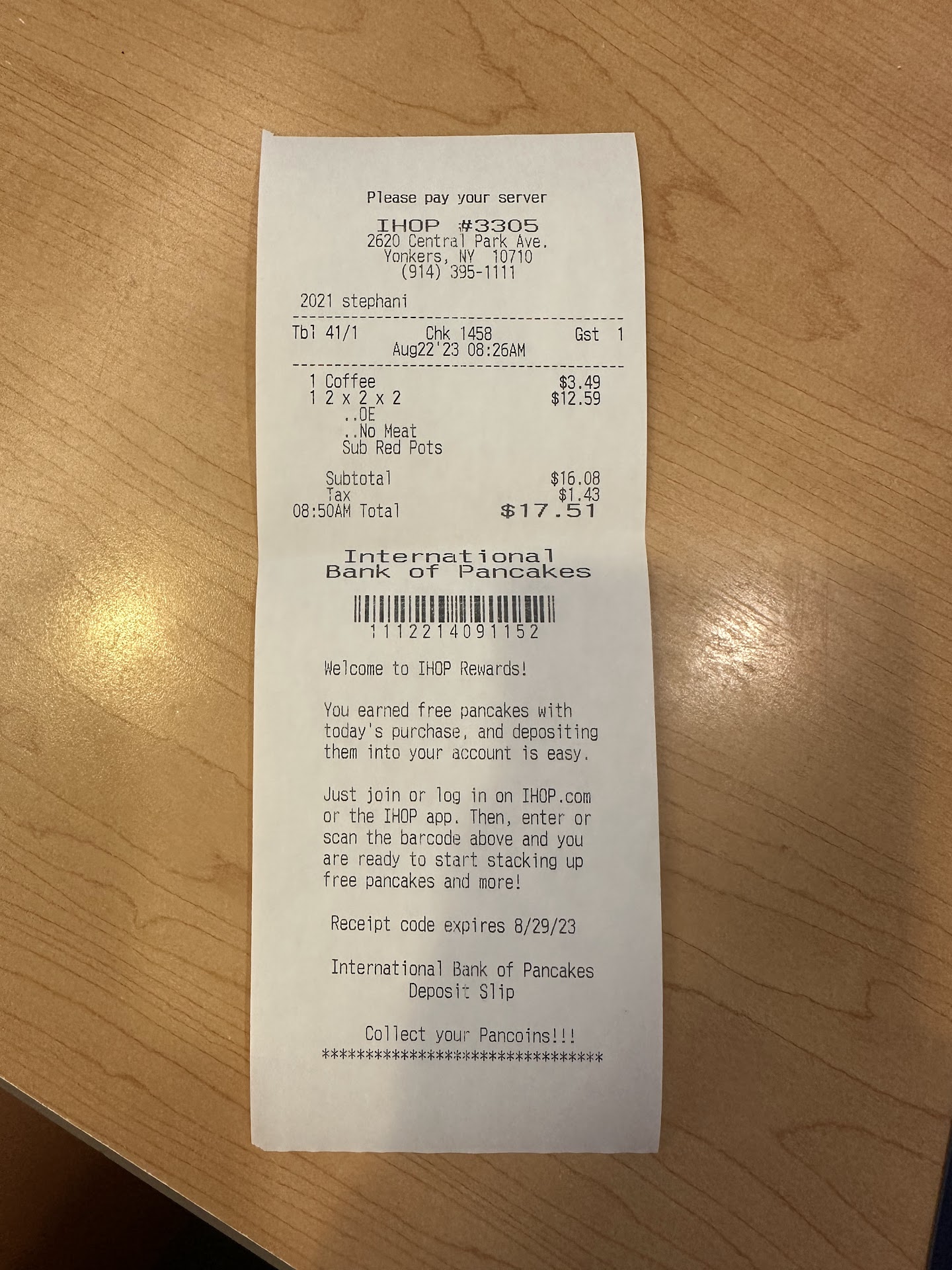 Read moreCame in, waited to be seated and thats perfectly fine during these times, it was actually a shorter wait than initially stated by the hostess. Once seated, we waited 15 minutes before getting our drink orders taken, then when taking our order the waitress was writing everything down on a piece of paper, guess the budget has been cut on notepads. I can hear the table next to me complaining about how they never got their food, management is coming up to them and apologizing and taken items off their bill. Happens to be the same server. What makes the wait the worse experience ever is seeing other tables get seated after you, get serviced before you and also get their food before you! On her first attempt at bringing our food, she brings us one only the pancakes/ waffles, incomplete since we ordered the combo, one of them missing the sauce but she quickly recovered and brought the rest of the combos too. As im eating i notice my pancakes are NOT gluten friendly as I asked, now had i been someone who suffers from some kind of digestion problem or allergy, which luckily I am not, my health wouldve been at risk. I just ask for gluten free as a preference. Now I'm writing this as im waiting after eating, to try to pay. Havent even seen her in the last 7 minutes, i never complain this in depth of bad service, but this is one of those rare instances where I loterally had nothing else but to dwell and write this experience. As someone who works in this industry for over 10 years, I do not understand how this happens and management doesn't seek to help this employee who is clearly struggling. And everytime i see her putting in orders on the computer, she just takes ages compared to her coworkers. This is something management should be looking at and they should be looking to help their employees when they need help. Once one table has complaints you should be going around making sure all other tables are satisfied and covered. Ultimately when people get bad service it isn't just the bad server its part of managements responsibility to deter the feeling by assisting...