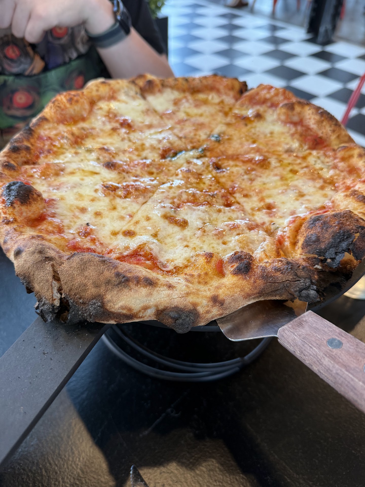 Read moreI’ve ordered take out pizza once prior that was pretty good so I had friends who are local Italian Americans meet me for dinner here and I’m sad we didn’t make a different choice. The Caesar salad was great. Rice balls were fine. Two of the three pizzas we ordered were successfully delivered hot out of the oven and they looked amazing but the one delivered for me was not what I ordered. They said no problem, they’d take care of it. I then waited long enough for my friends to allow their pizzas to cool and eat half of their pies before mine came. It was over fired and burnt so that the prosciutto was more like dried bacon. I normally love pizza crust but it was so brown and dry I didn’t bother. They said they could make me a new one in 5 min but if that was the case why did I wait significantly longer for the first one? Basically the server got the order wrong and never owned up to it. The pie should have honestly been taken off our bill but it wasn’t. Our server was friendly but not good at her job as she asked us repeatedly to confirm our selections and then still came back once after we had placed our orders to confirm which pizzas we wanted and still got it wrong…which is unbelievable as were a table of 3, not 7. Maybe just write it down. The second drink I asked for also took forever and came just as we were getting the check so that was also disappointing as they weren’t that busy and clearly had plenty of staff. They need to tighten up service or I can’t see this being a successful venture. My 3 stars feels pretty generous in comparison to others who rated this establishment lower. One last thing…the chairs are super uncomfortable and feel very DIY…basically a slab of flat wood over a metal frame. Not sure if the plan is to keep tables from lingering but that’s what it seems which is the opposite of great...