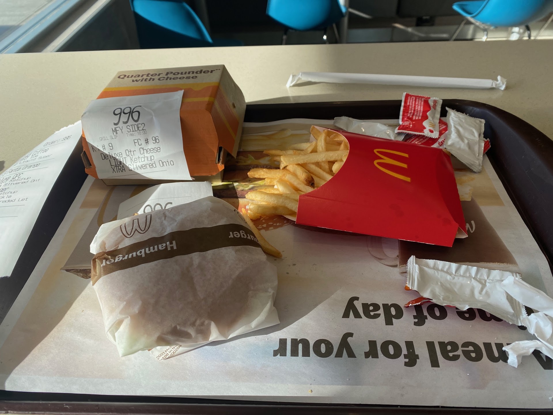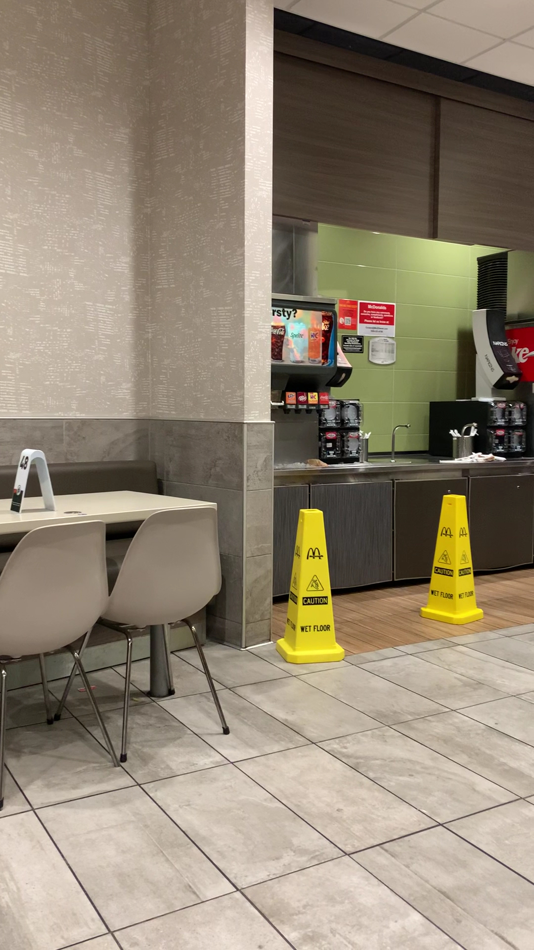 This restaurant is rather small but clean and well maintained. Ordering from the kiosk was easy and user friendly. You are able to customize your order on the kiosk and when done payment is easily done through Apple pay or a credit or debit card. You don't have to stand at the counter until your number comes up - the food is brought to your table. The tray the food came on however, did not include napkins, straws or ketchup so you have to fetch these yourself. A common complaint these days and not really due to anything McDonalds does, is that the food is too costly. In fact, if you customize your order, you get nicked for added charges for things that used to be free. Items like extra pickles or lettuce costs you another 25 cents. One benefit of a special order, however, is that the food is made fresh - the burgers and fries I ordered were excellent. At least they don't charge you...