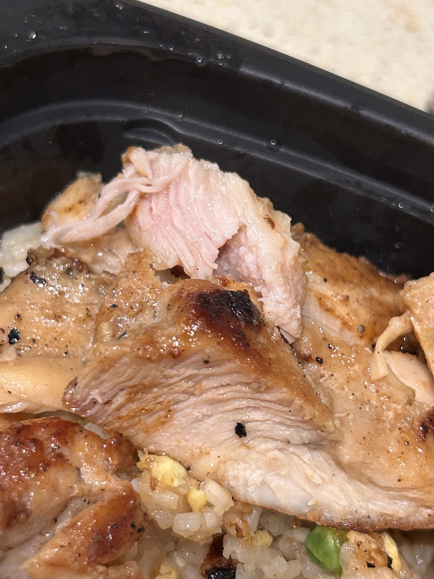 When my order finally arrived, it was a small chicken teriyaki, but to my dismay, the chicken was completely raw. This not only ruined my meal but also made me sick. Additionally, the rice was distasteful, further contributing to my overall negative experience.