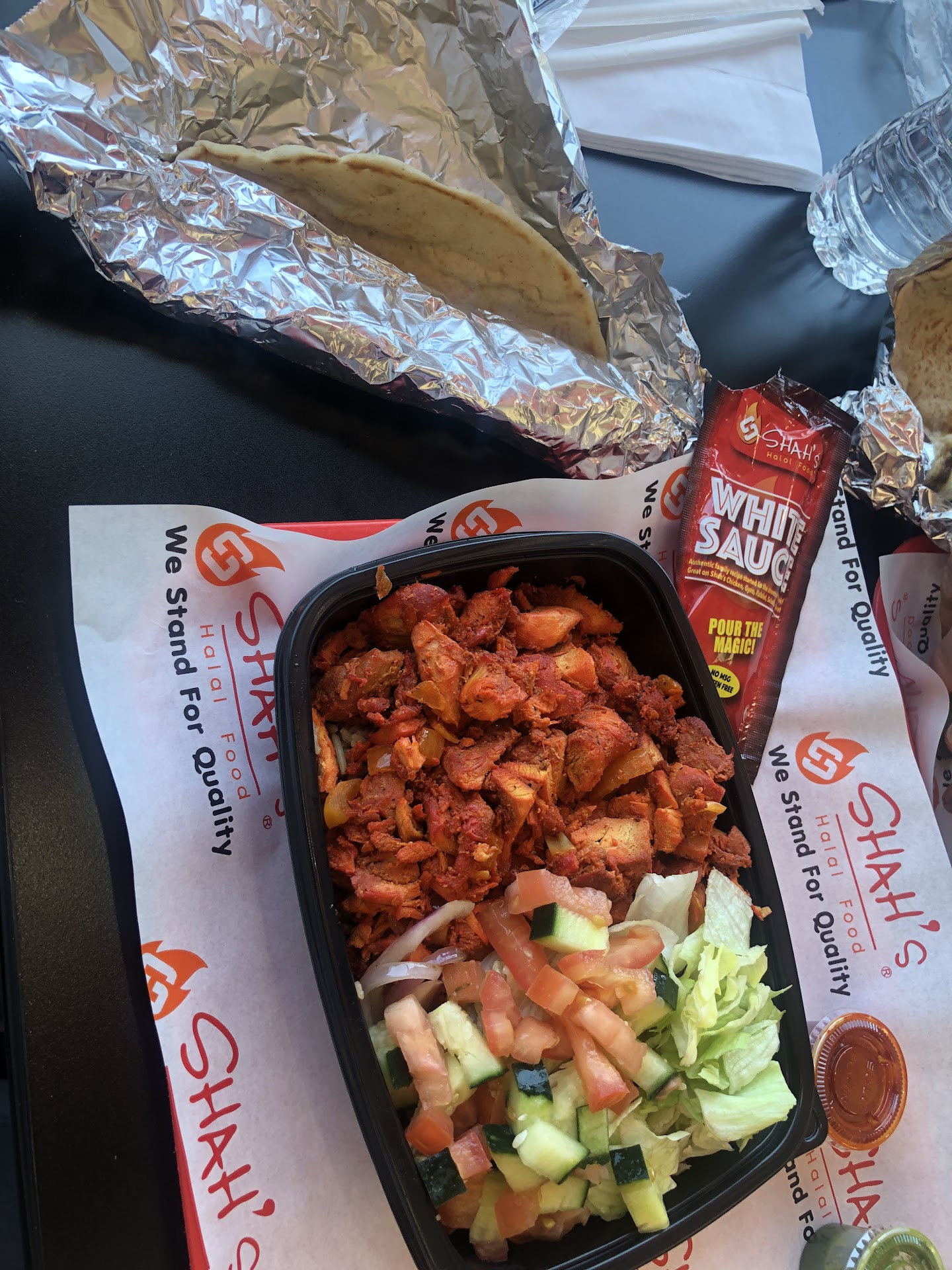 My daughter and I visited last evening for some take out platters and were impressed by the quality of the food, the prices and the level of service. We walked in and found a single counter guy and a single guy in the kitchen, with the counter guy helping a middle eastern family with their stay-in order. He got to us in a few minutes and then assembled our take out order (two lamb platters over rice, a mixed chicken and lamb platter over rice and an order of falafel). While we were being helped, a large middle eastern family of about ten people came in. The kitchen guy immediately came out and started helping out. I was impressed by that level of service. We had to wait a few min for our falafel but we managed to leave in about 10 minutes overall. More importantly, all the orders were correct with no missing items. The food was very tasty and far better than the Halal Guys locations in Westchester, which sometimes seems to run out of rice (!) or containers and where the lamb and chicken seem more greasy. And I was happy to see middle eastern people eating at Shah's; that makes me believe it is authentic quality food, compared to some sort of "fast food" that I would rather skip. Also have to say how nice their salad options are. For one of the orders, I asked for the salad "on the side" in another container and the mix they gave me (salad leaves, cucumber, hummus, onion, chickpeas) was delicious and plentiful. The restaurant was clean, with basic seating areas but overall a nice, pleasing aesthetic, no loud music to bother you as you enjoy your food. Plenty of parking in the back of the restaurant, as well as in front on...