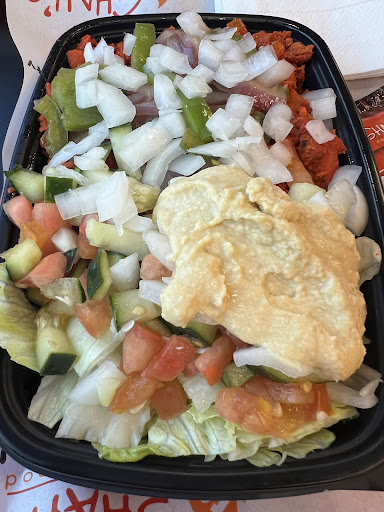 Read moreDecided to stop for lunch with hubby after our monthly appointment a few blocks away, and we are SO glad we did! The location is great, with plenty of parking, and inside is spacious and spotless! The people working here are super friendly and knowledgable about all of their food. We both got chicken over rice, Hubby had Lamb and chicken on his, some pitas, with some salad and sautéed onions on the side. I have to add the prices were surprisingly affordable for all the food we got, I took half of mines home I had so much I couldn't finish it! They offer packets of white sauce or hot sauce in case you're like me and want to add little bye little as you eat. Oh and omggg get the GREEN SAUCE! Its a cilantro sauce with a little bite to it and its sooo good I put it on everything! After we were done, we got an extra plate to take home to our son who was in school at the time and boy oh boy was he happy when he came home from school and ate! He asked me afterwards, where did we get the food and how soon can he go with is next time, commenting on how good it was :) Our server Jose suggested we try it because we never had it before and wow....it was great! He's for sure an asset to this establishment, personable and professional also. We woke up today, planning our next visit and how much we are going to buy to take home as well! Ohh wait i forgot,,, they have a larger white sauce you can buy to take home and ohh yeah baby we sure did :)