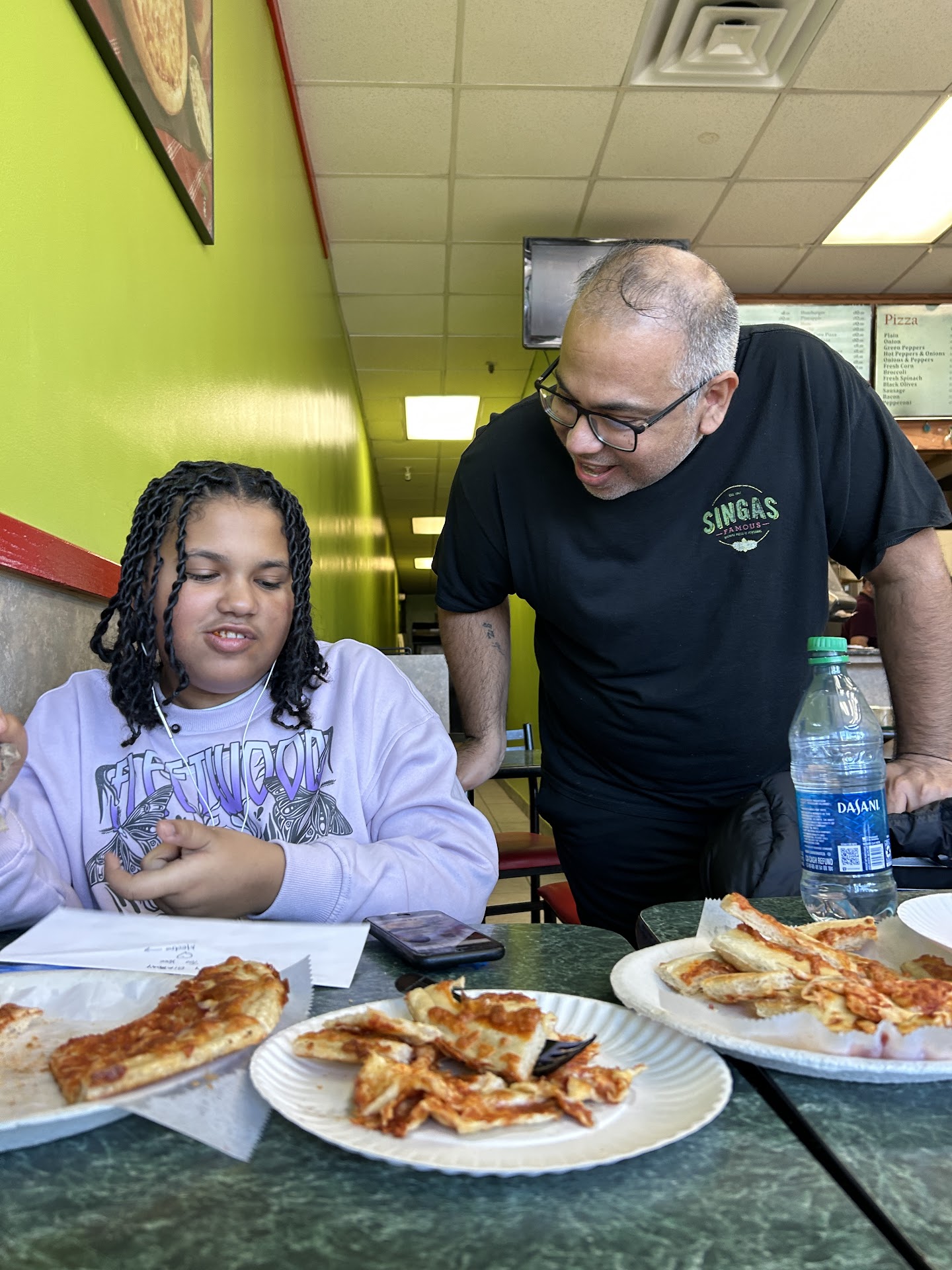 I have been a customer of singas pizza for more than 10 years at one point the owner was gonna close and i was saddened because its my daughter’s only pizza place due to her being autistic she will only eat pizza from this place, lucky for us the owner known to us as just Z is one of the sweetest and most understanding man, he accommodates us by preparing the pizza atleast 20 mins before we get there and he’ll leave it out so it wont be burning hot, all this at not extra cost, doesnt get upset just works around my daughters dissability and makes sure she feels welcomed, today was my daughters 13th bday and when we arrived i told Z that it was my daughters bday and he quickly got a card and envelope and handed my daughter a gift and did not charge us for the pizzas we ordered, we are not looking for anything free im just pointing out the good in the person and this establishment has a piece of my daughters heart as she has been here from a very young age as you will see in the pictures below. Thank you z for your kind heart and delicious pizza. You wont go unnoticed with us. Lastly for those bashing the establishment for not having slices its simple just respect the place and the way it does things its always been like that and i dont see why leave a negative comment just because you didnt get a slice of pizza sold. Forget those entitled people! Go get you a pie you will...