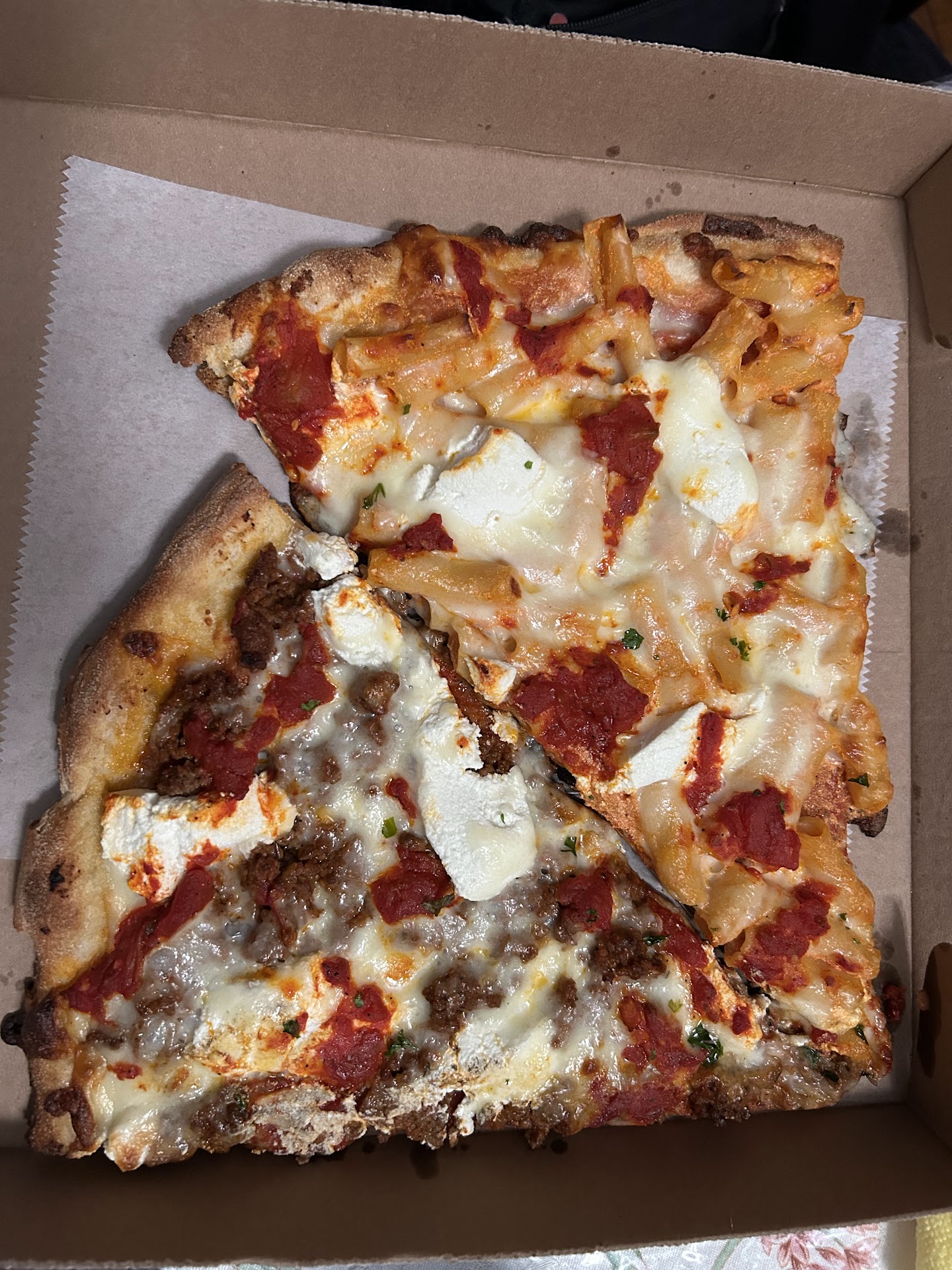We took the order home and to say we enjoyed it is putting it mildly. The pizza was fantastic- perfect amount of cheese, flavorful sauce and crispy fluffy crust. The garlic knots were the best we've ever had. No exaggeration. Soft, pull apart texture, mouth watering garlic seasoning with a small dipping sauce of marinara included on the side which was not at all bitter or acidic like we've had in other places. The cheesecake as well was a generous helping of smooth, creamy filling that was so good I instantly regretted not having bought another.