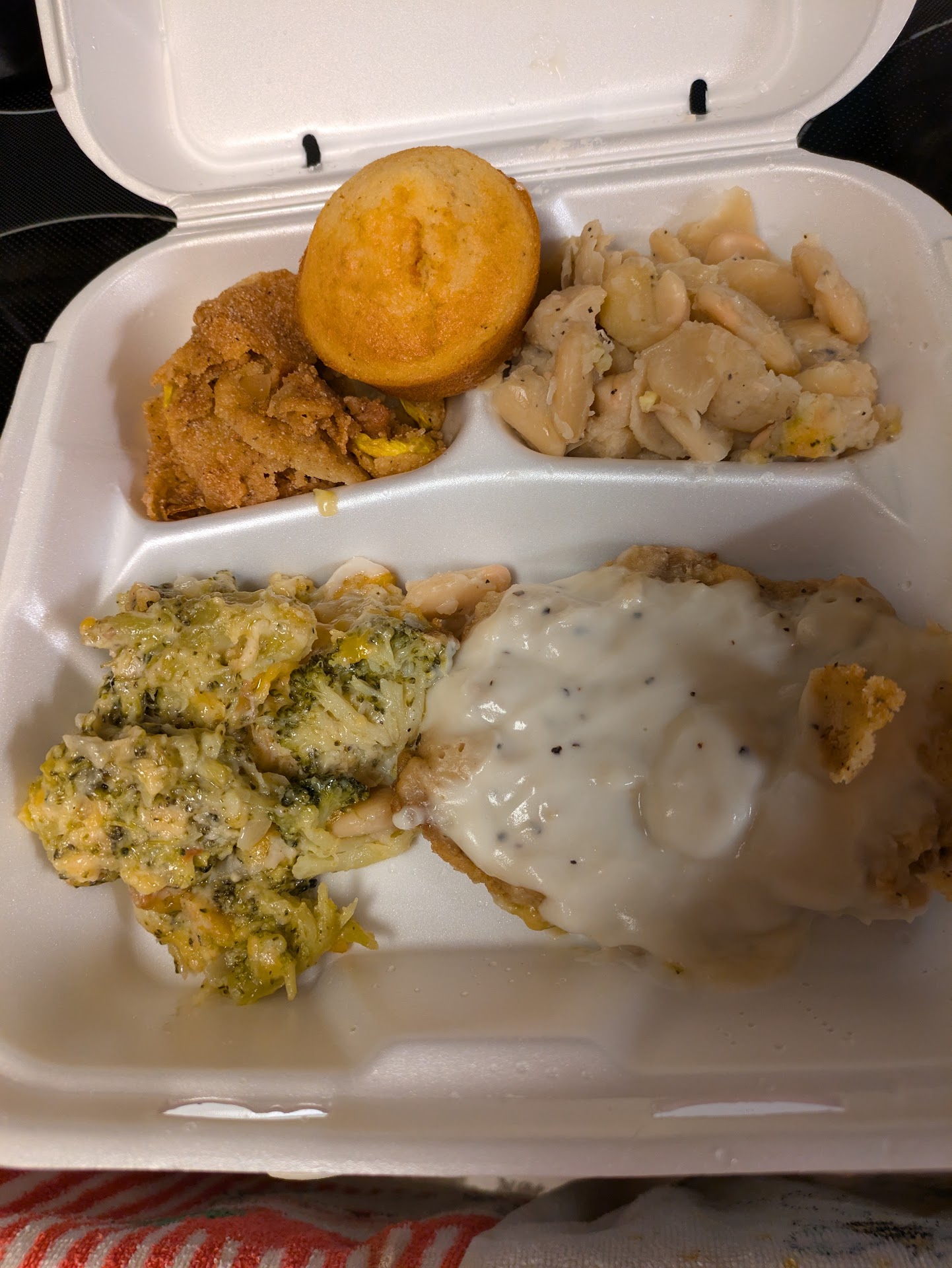 Read moreIf you want a TRUE home-cooked meal like granny used to make then COME HERE!!! I can not say enough great things about this place. My friend suggested we come here for lunch a couple of days ago and I knew it was “home cook & southern” food but I didn’t have high hopes as A LOT of places try to do the same thing and don’t accomplish that same “at home” taste I LOVE. Anywho, we stopped in here and right off the rip I knew it had to be AMAZING because it was 1 o’clock and it was almost completely full… on a Tuesday!!! We sat wherever we wanted instead of being sat by a host (which I love). We weren’t handed meals because the meals of the day were posted all around the building on a white board so they can erase things as they run out. I got a drink, entree, 2 sides, cornbread and a dessert for under $11!!!!! I could not believe it!!! The food I had tasted just like my granny’s cooking so I give the food a 10/10. The atmosphere reminded me of my hometown and my waitress was absolutely incredible. Needless to say, I will be...
