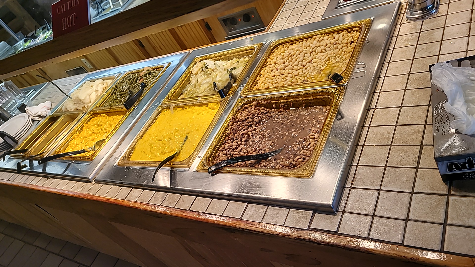 I have only been here on a few occasions but I have never been disappointed with the the buffet. On this occasion we ordered water with lemon thinking it was cheaper. The waiter informed us that the drinks came with the buffet. The buffet is really affordable. There was also a server at the buffet that was on the ball with keeping everything clean and topped off. Everything I tried on the buffet was really good. I think they rotate their selections . They normally have a selection of soups to choose from. This time they had a cabbage soup that was to die for. They had some sinful meatballs that tasted like meatloaf. They seem to always have fried chicken. Which I don't really go for so I couldn't inform you on that. I think they always have baked chicken as well. That is what I go for and it is always good. They also normally have some sort of fried fish. I normally skip this as well. It is normally breaded with cornmeal. I assume it is Catfish which I do not like. However on this occasion my cousin informed me that it was Whitefish. I however did not go back to get a serving of it. I think they also always have mashed potatoes and gravy and macaroni and cheese. I think I always get green beans as well. They always have fruit. On this occasion they did not have strawberries which is odd. They have cottage cheese and macaroni salad. They have a salad bar with a selection of toppings which is really good. They have soft serve ice cream with a few toppings. They always have chocolate pudding and Jell-O. Everything is always fresh and tasty. It's basically really good southern food. Even though they don't have as big of a selection.The food is a lot better than Golden Corral as well as the service. They also have stuff you can order from the menu but I haven't...