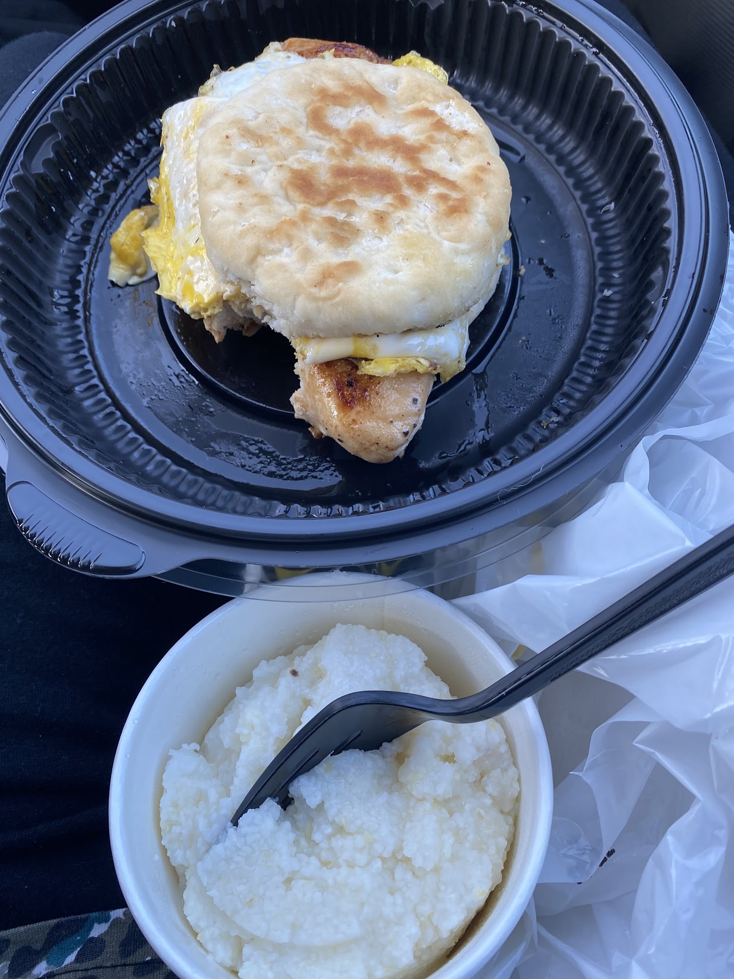 But then, brethren… came the grits. Oh, the grits. A bowl of plain, ordinary grits, and atop them, laid not a blend, not a melt, not even a sprinkle—but a single slice of American cheese, just flopped there like it had fainted in the Spirit. And I tell you, it was so glorious, so divine in its comedy, I had to stop and take a picture. Yes sir, I documented the miracle.