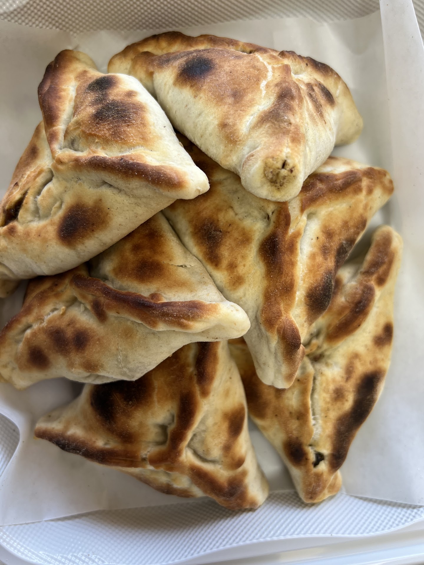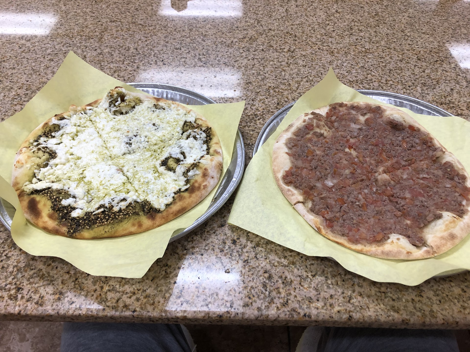 I forgot what you call these things but they look like pizza but with Mediterranean fixings. They also sell tiny pies with spinach or cheese inside. Best of all, you can buy fresh baked pita bread!!! OMG! They are smoking out of the I've never deliciousness! You can eat there or take them home to your hungry loved ones. They're a bit pricey but the food is fresh so ehh... One more thing that's great about it's location is, it's next to a pastry & coffee shop. So, we go there for breakfast and order our coffee next door. They don't mind it coz the don't serve coffee. Another thing is it's few step to a Mediterranean grocery store. I ordered food to go and while waiting, I went to the grocery store and bought stuff to go with it like cucumbers, parsley, fresh dates, hummus, 🍅, olive oil, and lychees! What?! Lychees! Yes, they're this great tropical fruits that's to die for. You just have to go there and experience it yourself. It's absolutely fun and not to...