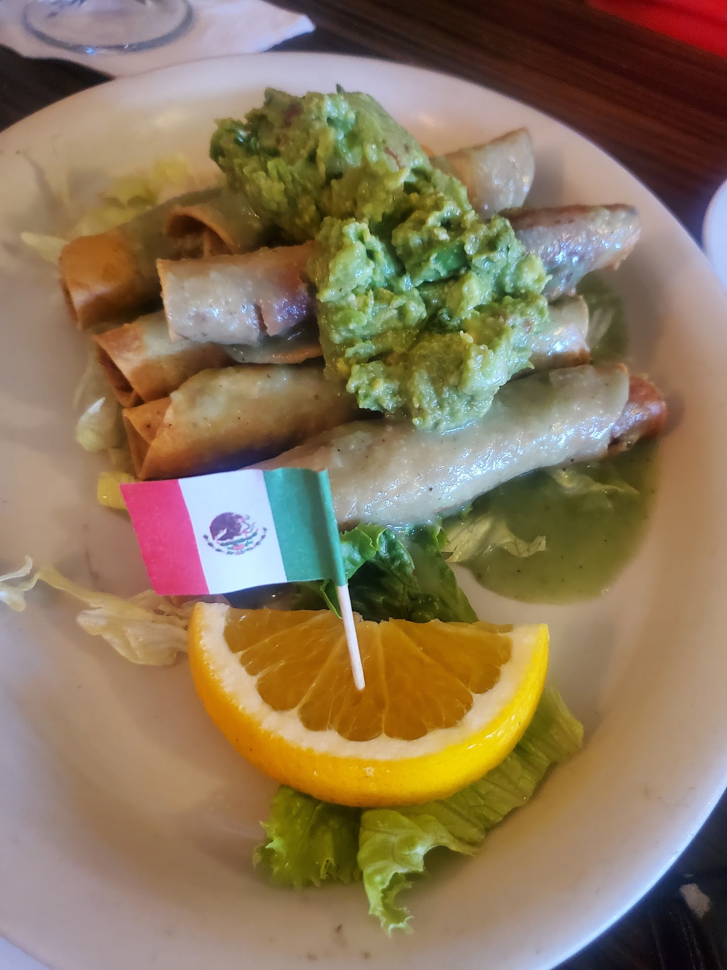 My sister ordered the taquitos, and she was surprised by how flavorless they were. The "guacamole" served with them was green salsa, and there was no cheese, sour cream, or tomatoes. My steak and shrimp dish was also unseasoned; the shrimp appeared to have been boiled. The plate was overloaded with thick-cut, flavorless onions and bell peppers that overshadowed the rest of the meal.
