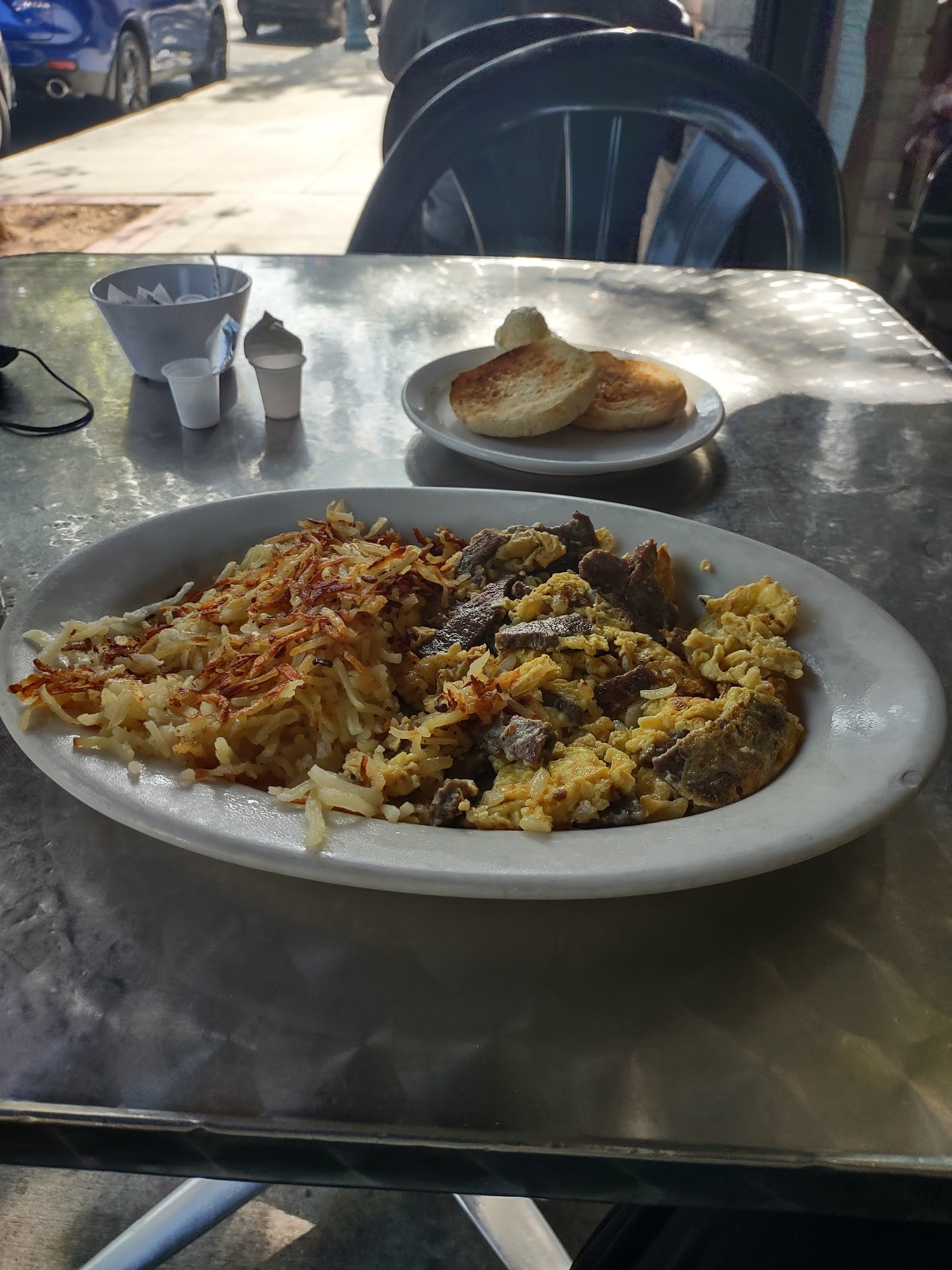 Read moreMy son 19 months old and I came for some breakfast As We were sitting in a front booth. Their busboy advised the waitress to sit us in the last booth so we followed her. If i had known it was next to the restrooms i would of said NO.. But this is the first time going here. We sat and ordered their breakfast special of the day diced ham and egg with hash brown. I asked if i can substitute the hash browns for fries. She said "sure there is no problem". (I have a toddler, they like finger food so i thought ham and fries will be his breakfast). As we were waiting a few clients passes to enter the restroom. But as they started to have a line. A lady decides to sit on our booth to wait for the restroom. but she asked and started conversing with us. you can tell my son enjoyed her company and was laughing. A few minutes after another lady sits again. Without asking and she is on her phone and never even apologize for intruding on my booth. My son was sitting next to me there was an open seat in front of us. That doesn't mean its an open invitation on my table. Well we finally got our order and they bring me ham and egg with hash brown. Im thinking (NOOOO IM GOING TO WAIT LONGER FOR THE FOOD) Now I'm trying everything to keep my son entertained. I mentioned it to the waitress and she responds (we ran out of fries im sorry. ) now I'm thinking what is my son going to eat? He doesn't like egg and i have tried giving him hash brown before and not successful in eating it.. Then the waitress tells me but we do have French fries if you want... Im like WHAT, ISN'T FRIES AND FRENCH FRIES THE SAME THING!!!!.. ..... She tells me "no fries are the thick stake fries opposed to french fries are the skinny long ones"..wth.. Omg. OMG i just needed finger food for my toddled.. She brings me a plate of FRENCH FRIES in substitution of the hash brown. I thought that's what i had asked in the first place. My son was a happy camper with his fries and ham. Food was tasty. Yes we would go again but next time not sitting in...