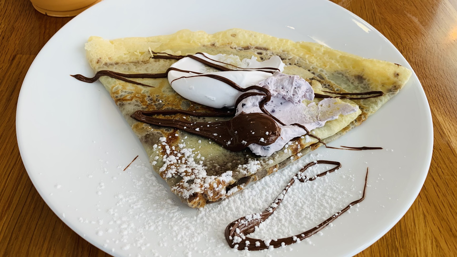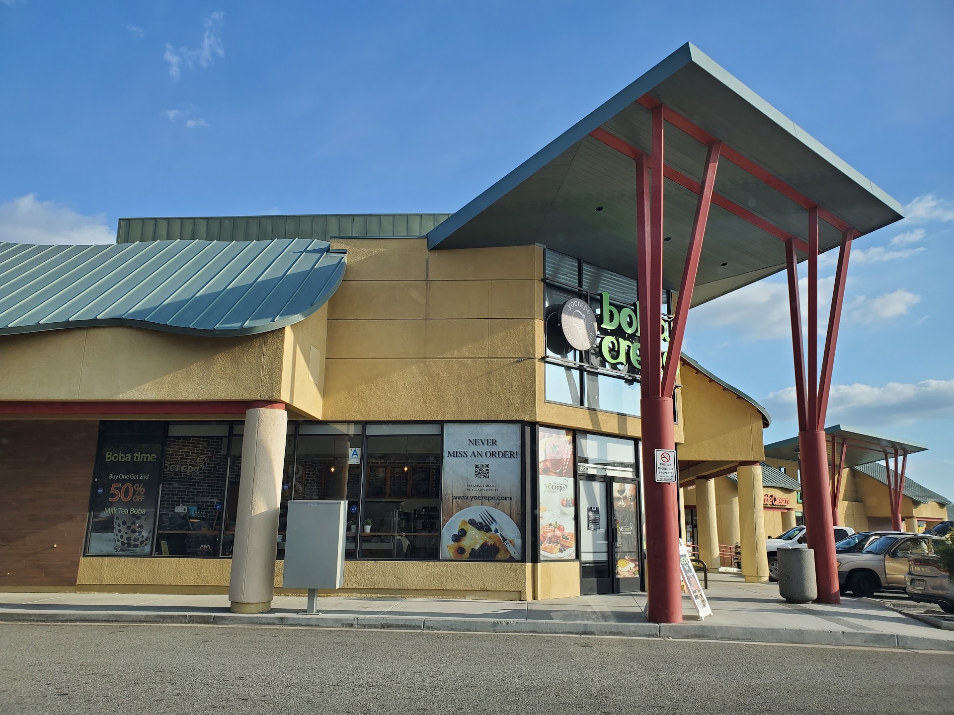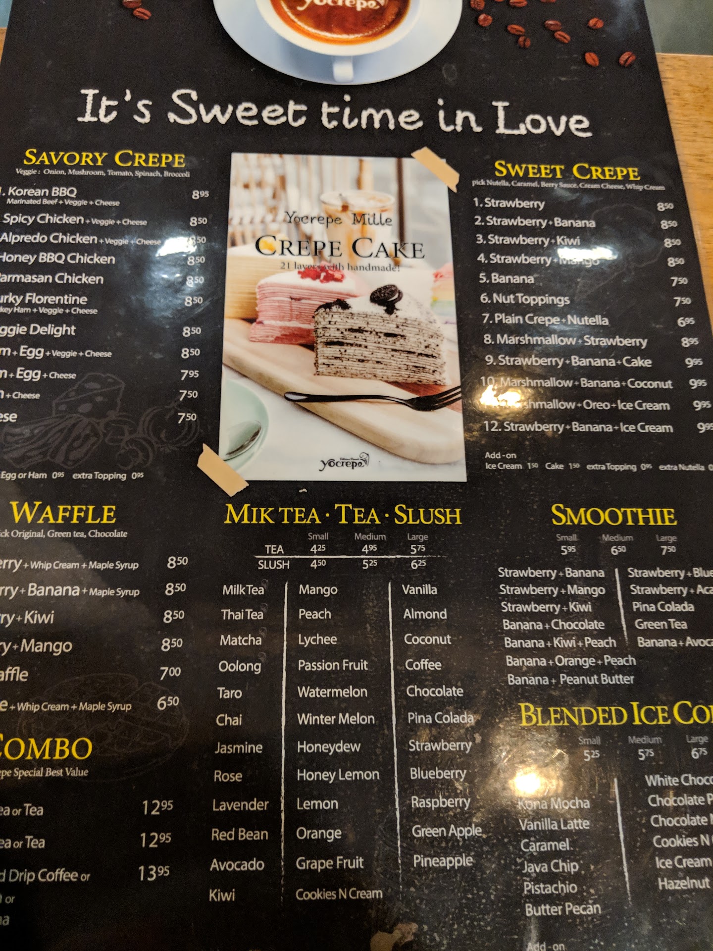 Read moreI always drove by this cafe on the way to work, I figured it’s finally time to piqued my interest by checking them out. I ordered Nutella crepe with berry cream cheese and whip cream. It was super delicious and fresh, exactly how I like it. Accompanied by a Large Slush of Thai Tea, which was sweet and blended perfectly. Indoor dining is a bit small but adequate enough to dine in. Parking is plentiful infront of, on the side, and at the back, shared by the surrounding businesses. I didn’t have the chance to try the 21 layered Crepe cake or the bingsoo but will update this review when I do in the future. Staff was very welcoming and answered all my questions and explained everything. I’m not sure how busy they get but the wait time was fast and got my orders in less than 5mins. I will come back again...