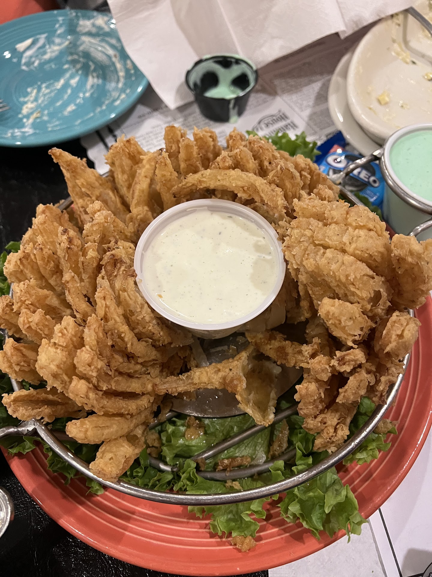 We haven't visited Hammett House in years due to moving out of state. I got to wondering if they were still around. I remember how good their food was. Of course I Googled them and they were still going strong. That's I down, now if they are still as good as they were back in the day. It was in the late 70's the last time I was there and I had Prime Rib, it was fantastic. So, on a Saturday we drove from west of Tulsa to Claremore, OK. It was about 40 miles one way, we pulled up and they are still in the original building. That's when you start to think you may get some really good food. Once in the door, you see those beautiful pies, those big mile high pies. Oh my, I felt I had never left. They seated us and our servers name was, Hunter. Now half of your meal experience can be your servers attitude. Hunter made it a full 100% plus that night. He was as personable and sincere as any of the best servers around. Thank you Hunter. Also, just a side note, he's getting ready to start electricians school. He's got a great head on his shoulders. Also, I'm an old electrician and I believe he will do very well. Now for the meal part, my wife ordered Ribeye and baked potato. I asked if they still have their Prime Rib, I almost had a big let down when Hunter said that it was a special one night a week. But the stars must of aligned that night, because the one night a week was Saturday, YAY, I'm going to get my Prime Rib. So our friend and I ordered the Prime Rib and baked potato fully loaded. We also had the perfect blooming onion, cooked just right and wasn't the least bit greasy. Well, to be honest, it was still one of the best I've ever had. My wife's Rib Eye was cooked to perfection, which by the way, was her birthday and Hammett House didn't disappoint. Our friend and myself throughly enjoyed our Prime Rib, just as I remembered it. We had enough left for another meal the next night, and they have plenty of go boxes. For dessert, my wife had cheesecake, our friend had pecan and lemon and I had banana cake. There was no room for dessert, so more go boxes. We had it later that night and the pies were just as good as everything else there. They were the perfect ending to a perfect day. So if you haven't been there, you gotta try them. The people there have a great attitude and make you feel at home. And again, Thank you Hunter for a great evening, we will...