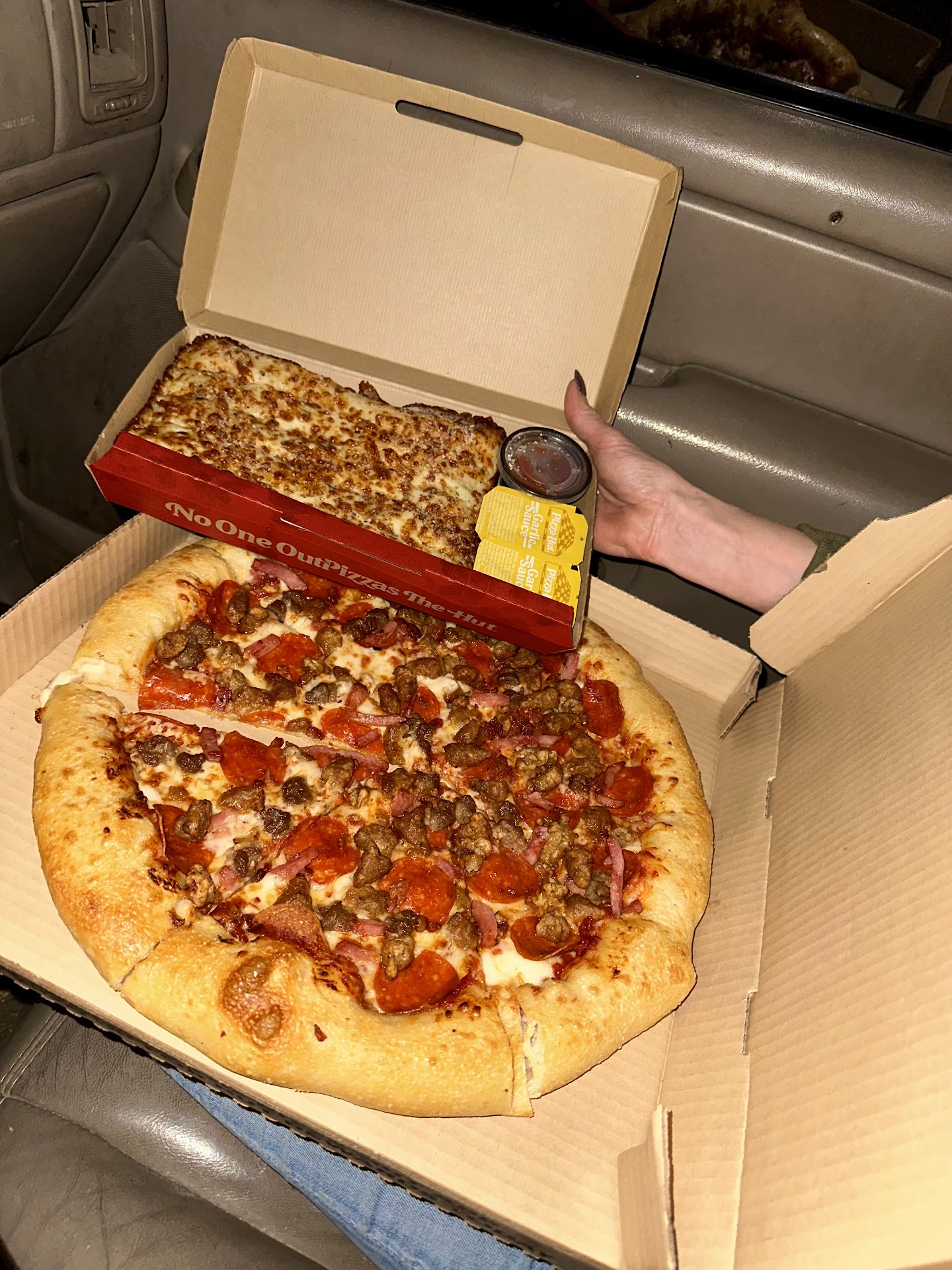 Ā Ā Ā Read moreHORRIBLE. Driver had a flat and order was almost an hour late. Food was cold and soggy. They called me like 10 minutes after my order was supposed to arrive to let me know the driver had a flat and it would be another 20-30 minutes before it would arrive and I expressed my concern of it being cold on arrival. He advised that I call back if that was the case and they would either remake the order or give me a credit for my next order. About 20 minutes after that call, I called to get an ETA on my order and was on hold for over 15 minutes and then my order arrived, LATE, COLD AND SOGGY. And no one ever answered my call and at that point it was less that half an hour before they closed. HORRIBLE experience. Cold, Late, SOGGY food, no one answering my call, ABSOLUTELY NO APOLOGY FROM ANYONE during the whole experience. I also had used some of my Hut Rewards Points, which were wasted as well and being out of pocket for the order. It was a disgusting and disgraceful experience. I only gave the 1 star so I could leave a review. It didn't even...