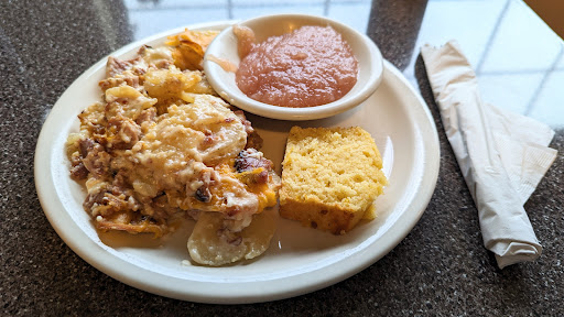 Read moreI ordered the Scalloped Potatoes and Ham. I thought that was cornbread but it was mandarin orange quick bread. In the bowl is applesauce. All of it was delicious. With a can of Diet Pepsi the bill was just under $10.