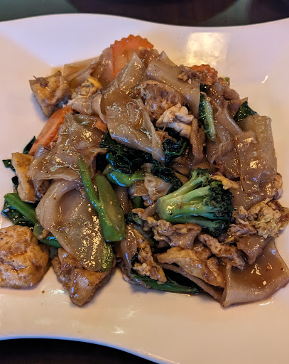 We started with chicken satay and Thai style roti both very good, but particularly the satay dipping sauce which was addictive. We then went with Kee Mao with "ducky" (crispy duck to you and me) and crispy chicken stir fry and asked for level 3 spice since I thought my wife may not like level 4. A good decision, since as an Indian veteran who can handle hot, I thought level 3 had a bloody good kick. The Kee Mao noodles were delicious and the portion of duck on top generous with some really crispy skin which we both loved. The stir fry comes with vegetables cooked in a delicious gravy with the crispy chicken on top and a side of white rice. I've just finished the leftovers for lunch while watching my Redskins start well vs The Giants and it was just as good next day. If you're looking for ambience, this isn't the place. It's just an honest to goodness diner serving delicious Thai....