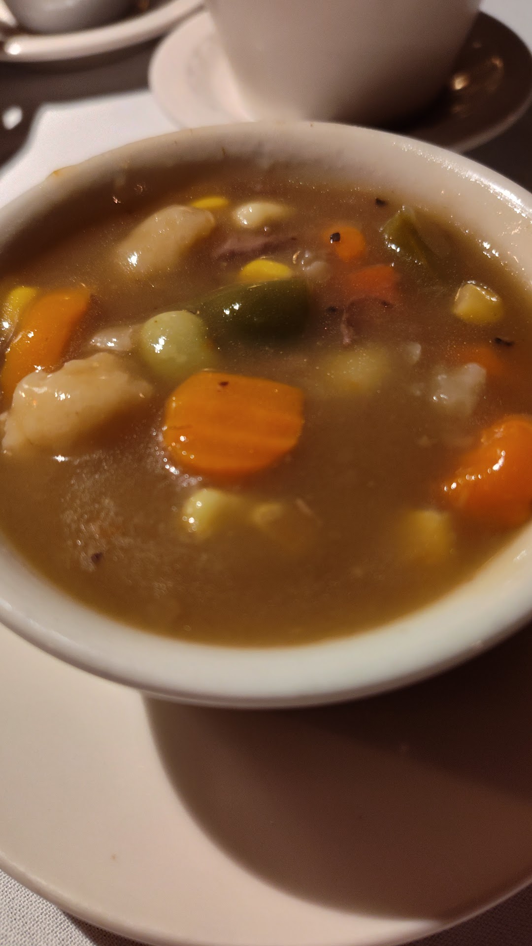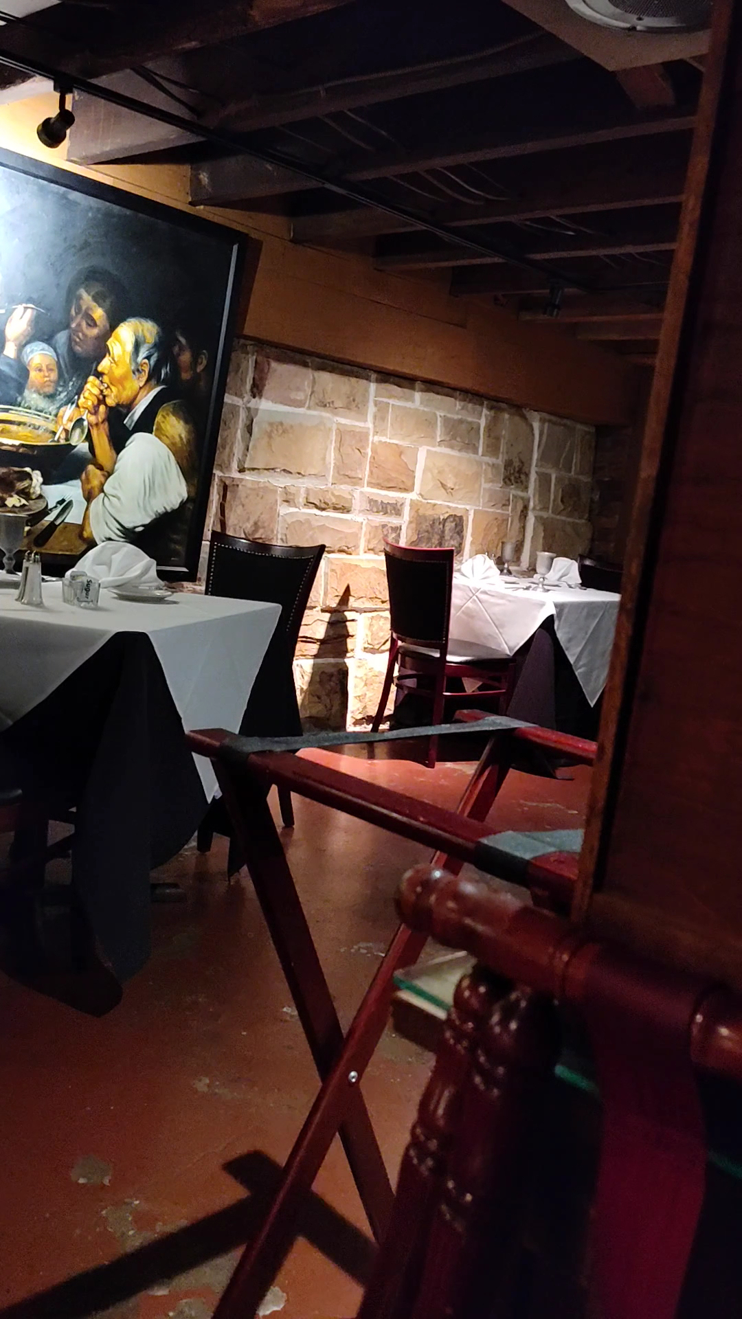 Read moreAuthentic setting. Unique upscale, restaurant, located on the lower level of the Tara Hotel. Dark, low beam ceiling about 6ft high. Saw some people not duck low enough and they hit their head on the beams, lights and the sprinkler head. My sister got lightly bumped in the head by a server's tray. No harm done but to give you an idea of how low ceiling is. The servers maneuver around very well over all and they do tell you to watch your head. Our server was very good, informative and polite. The ribs entree was very tender and tasty! Loved how they brought out the toppings tray for the baked potatoes, that was wonderful. The homemade beef vegetable soup was a nice blend of vegetables and the fresh baked breads were delicious. An overall delightful dining...