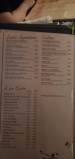 We were sat immediately in a relatively secluded dining area. The restaurant itself consists of a variety of different dinning options and seating. Their table sizes range from 2-8+, along side available hibachi and bar seating arrangements. The room's main color scheme consists of red and black with dim overhead lighting. We visited later in the evening and it was relatively busy, but with how they arranged their tables, it never felt over crowded.