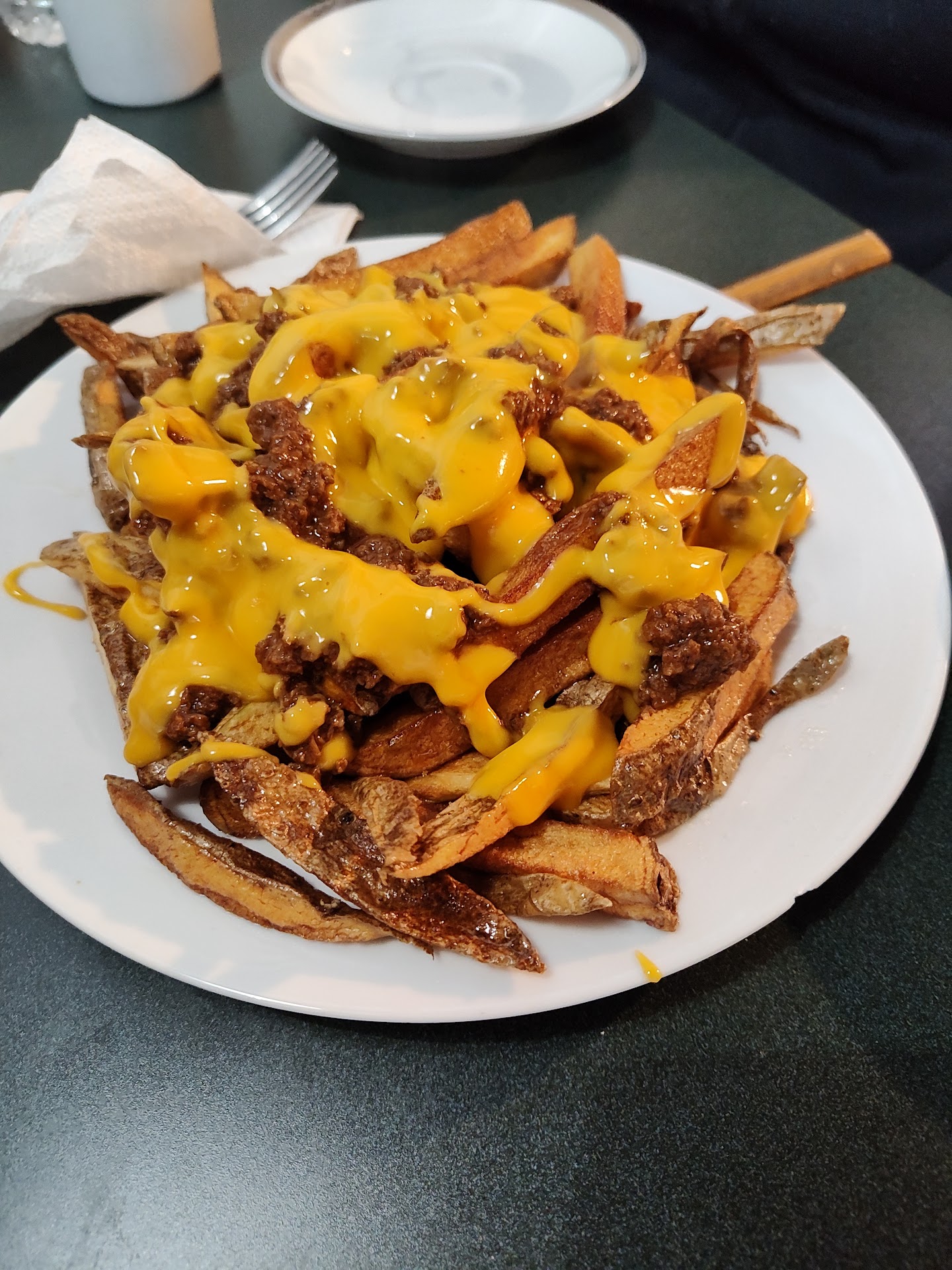 A cozy little place with incredibly friendly service, Cosmo's Kitchen was a fresh experience with a nice variety of dishes. We started off with the basket of chili cheese fries, which at most places I find disappointing, but the fries at Cosmo's are fresh and delicious, potatoes cut up and fried to perfection (as fries should be in my opinion) and the chili was delicious and it made the dish tasty and fresh and crispy. At most places you get a pile of soggy fries and bland, lifeless chili. Best chili cheese fries I've ever had. Next time I might get a bowl of chili. I got Frank's Feast, which is a plate of spaghetti with meatballs, sausage and fried peppers. I find that usually, ordering spaghetti at a restaurant, the sauce is bland and flavorless. Not here. Cosmo's is not afraid of spices. The sauce was good and flavorful, the sausage was tasty but the meat balls were the star of the show. They were firm, meaty and full of flavor. Delicious. The garlic bread was hot and fresh also, and nice and moist in the middle. The rest of the table ordered The Cosmo Monster Burger? Sorry, not sure what it was called, first item at the top of the menu. It was massive, horizontally, not vertically, which my daughter recently said was the way a large burger should be able that restaurants always make them too tall and it's dumb because it's hard to eat. Lol. The only other thing I tried was a buffalo wing and it was perfect and nice and crispy and spicy. Not breaded. My entire family was very impressed and happy and we all left with full bellies. I've seen Cosmo's Kitchen on DoorDash and assumed it was a virtual restaurant. It is not. They are real, and they are very nice local folks who put a lot of care into their cooking and their service. I can't wait to try other things, like the ribeye mushroom sandwich and especially the oyster omelet. If you guys read...
