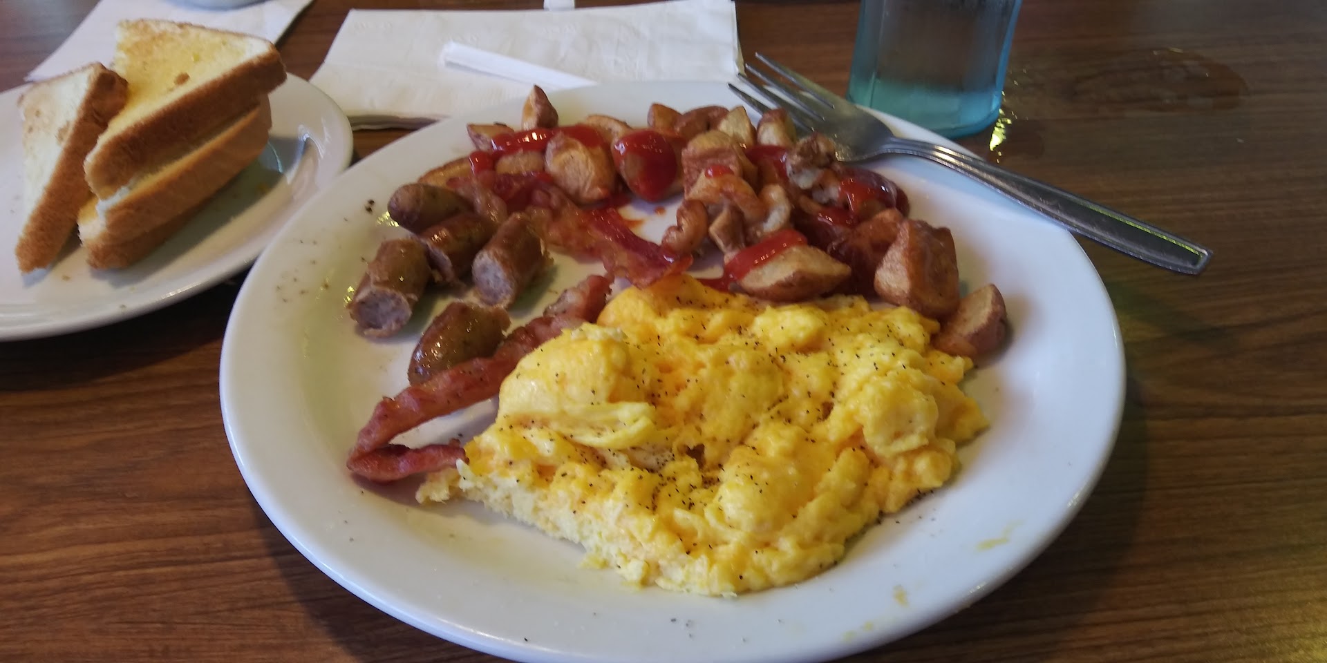 Service: Our waitress was extremely prompt and friendly. She kept my coffe really full and was very polite. She had good vibes and I liked being around her. Too bad I forget her name I think it was Nicole or Megan... She did a good job.
